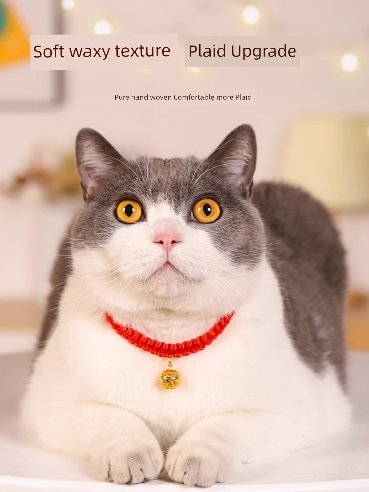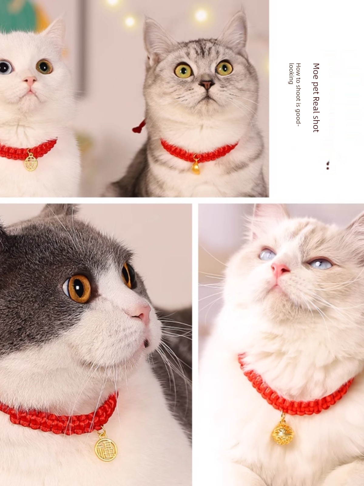 Ошейник для кошек "Счастливая красная веревка" с колокольчиком, ошейник для домашних животных, ошейник для котят ручной работы, украшения для котят