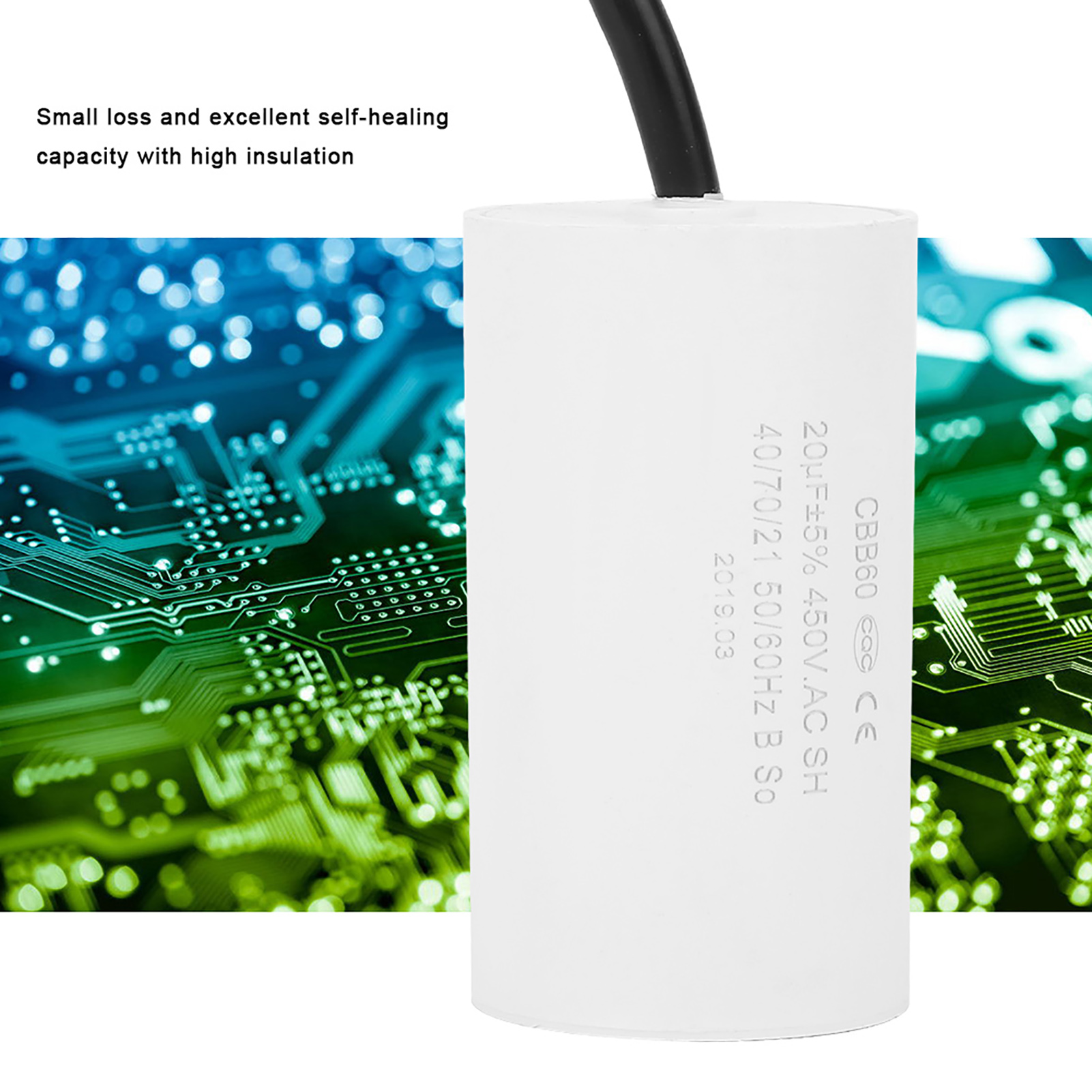 Пусковой конденсатор двигателя CBB60 450 В, 20 мкФ, микрофарадный конденсатор с проводным выводом