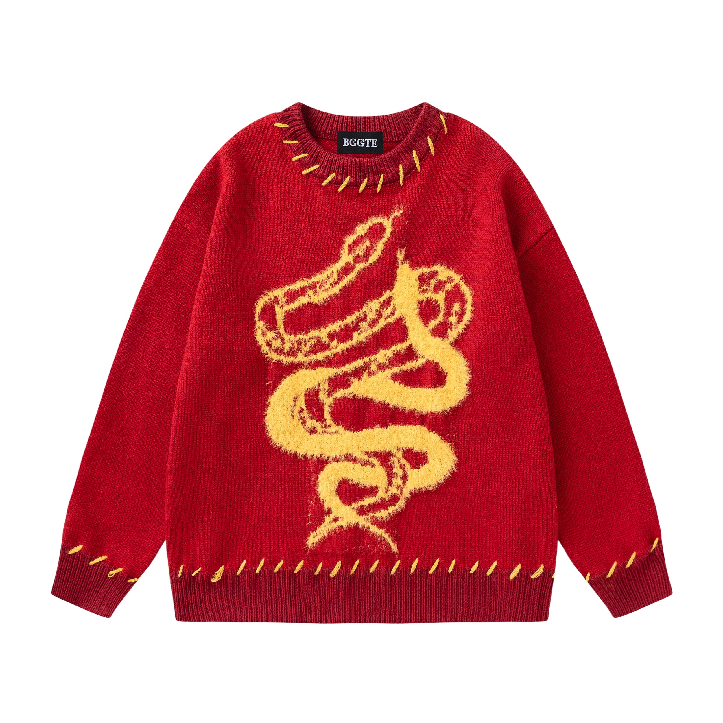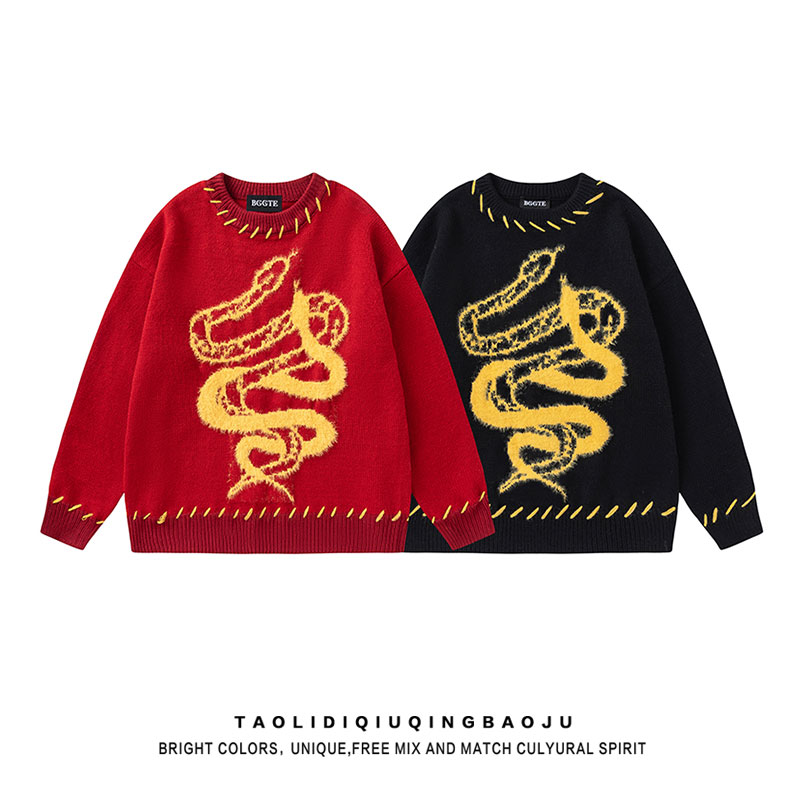 Китайский стиль, год Змеи, красный свитер, женский, зимний, ретро, свободный, парный свитер, одежда для Весеннего фестиваля, Новый год