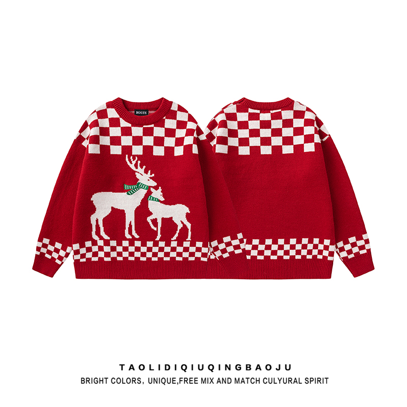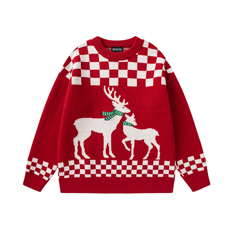 Рождественский свитер с оленями, праздничная атмосфера, красный, женский, новинка 2025, ретро, свободный, унисекс, удобный трикотаж