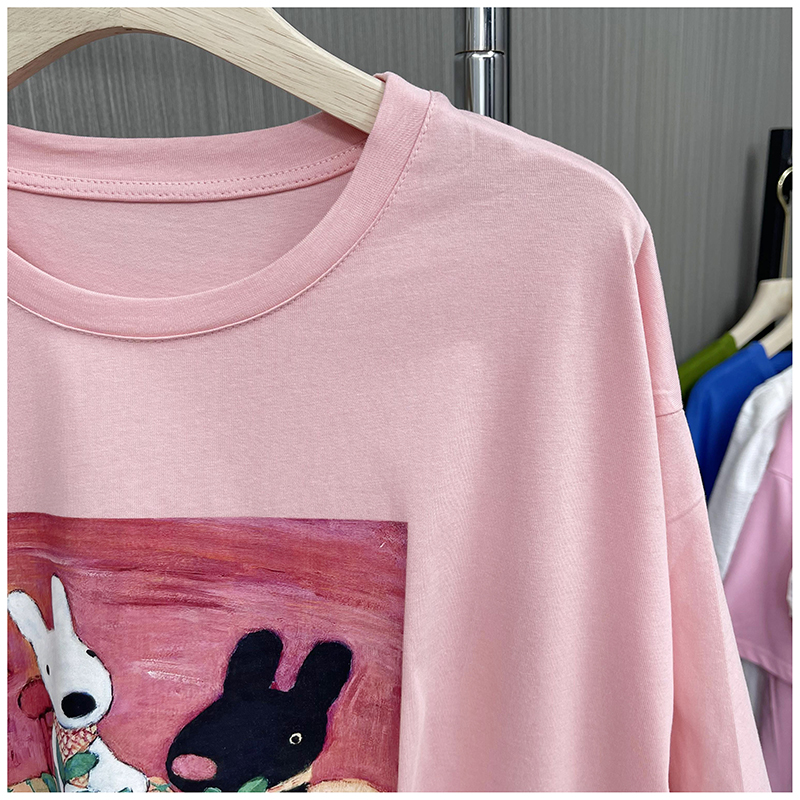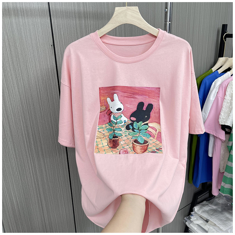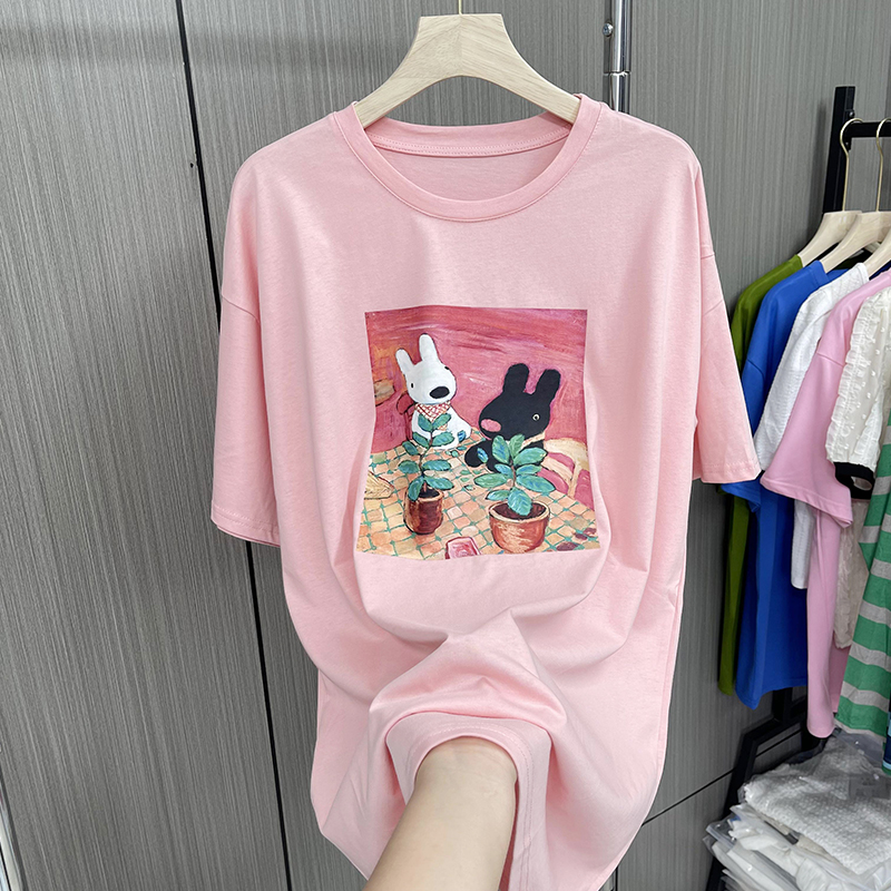 Полная одежда для девочек большого размера, хлопковая розовая футболка с коротким рукавом, женская летняя стильная нишевая свободная, стройнящая, скрывающая полноту