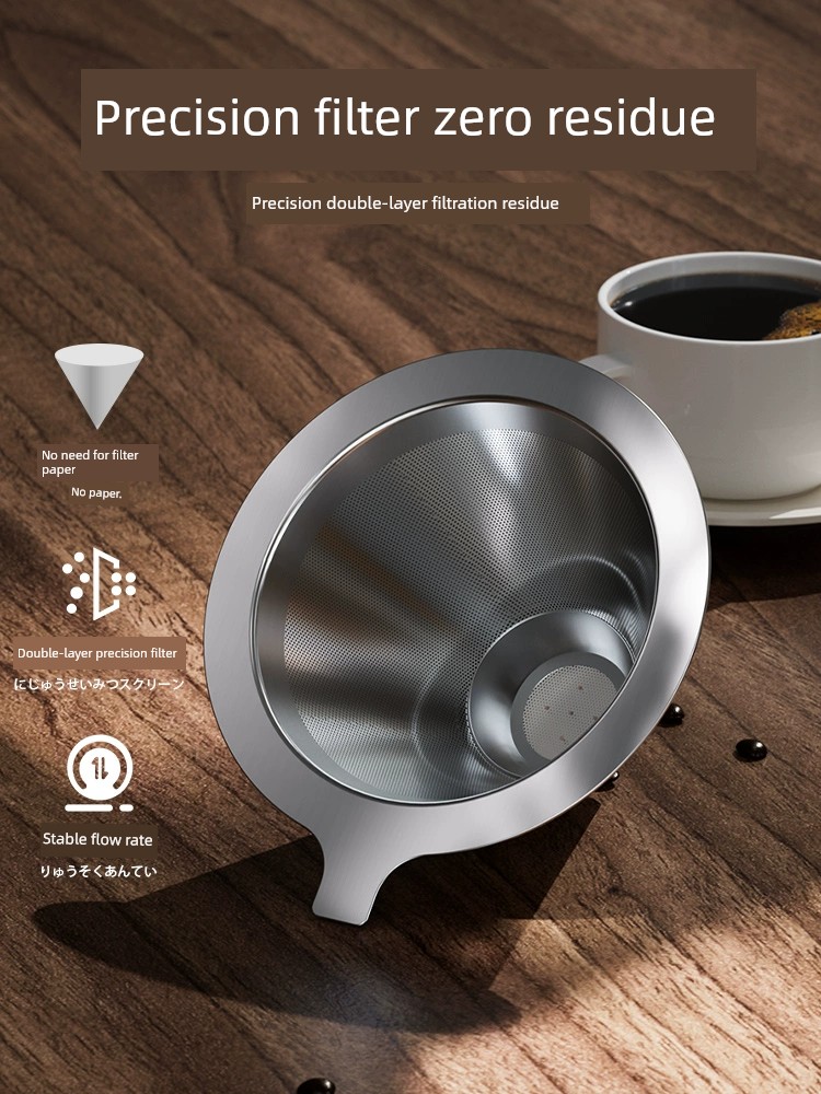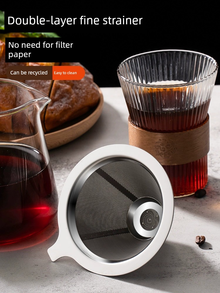 Фильтр для кофе, портативный, для ручного наливания, без фильтра, из нержавеющей стали, экстракционная чашка, воронка для бумажного фильтра с ушком