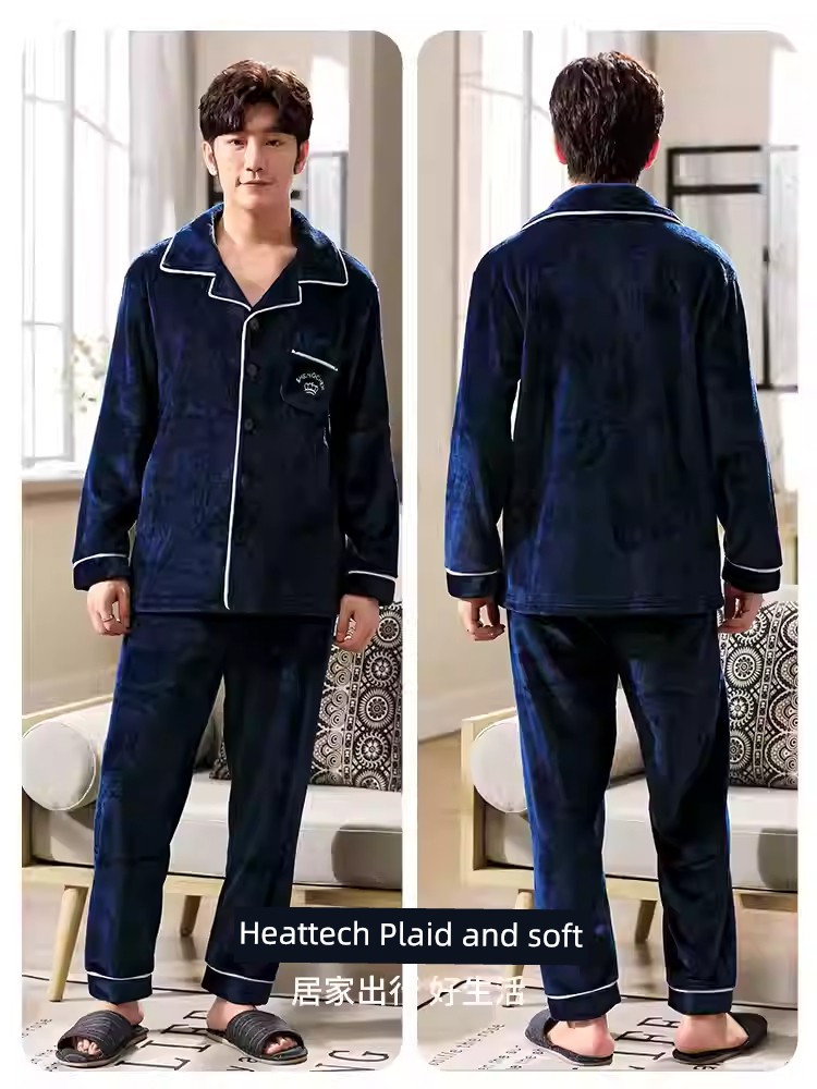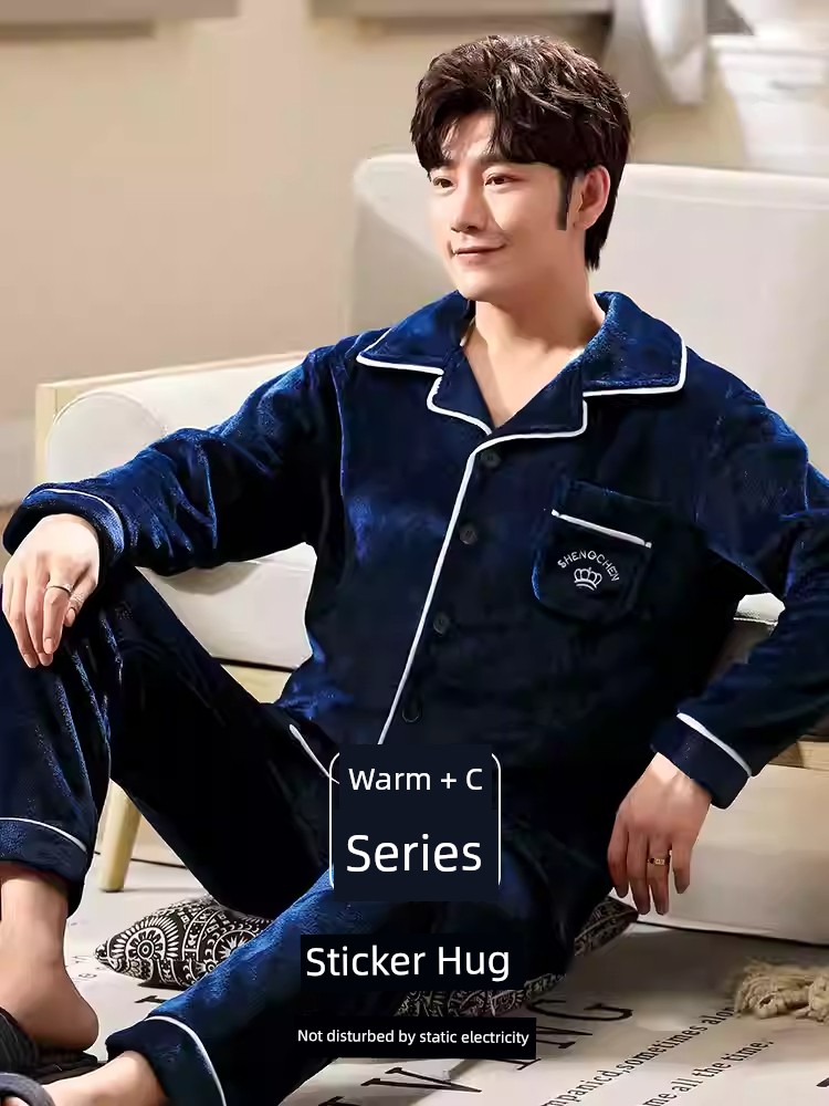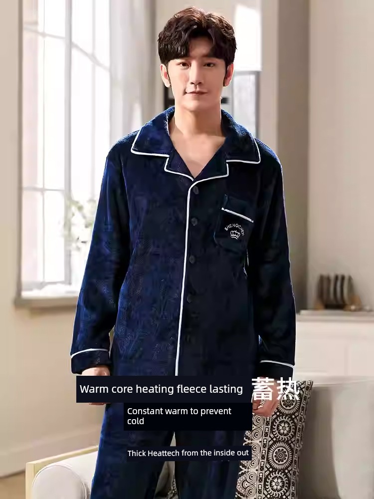 Коралловый флисовый пижамный комплект мужской осенний и зимний теплый 2024 новый фланелевый мужской флисовый утолщенный домашний комплект
