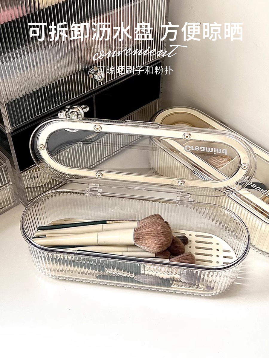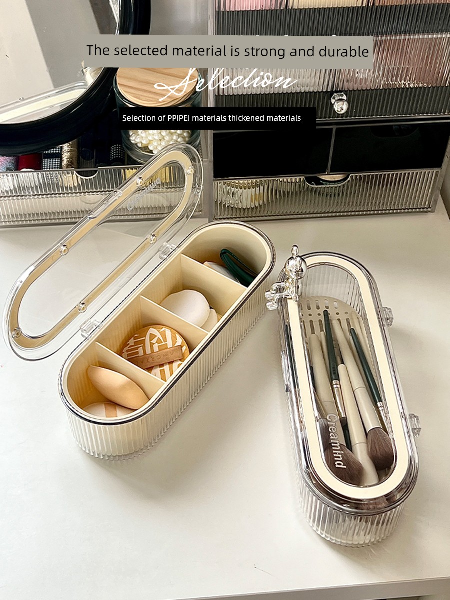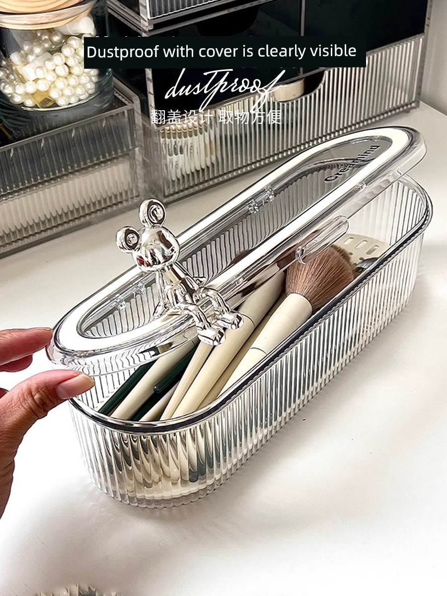 Косметический органайзер для рабочего стола, пылезащитный, с крышкой, модный, для кистей, помады, пудры, бьюти-блендера, небольшая отделочная коробка