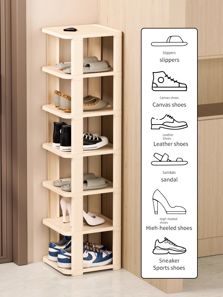 Полка для обуви в кремовом стиле, многоуровневая, для дома, простая полка для обуви в прихожую, студенческое общежитие, сборка, небольшой шкаф для обуви, стеллаж
