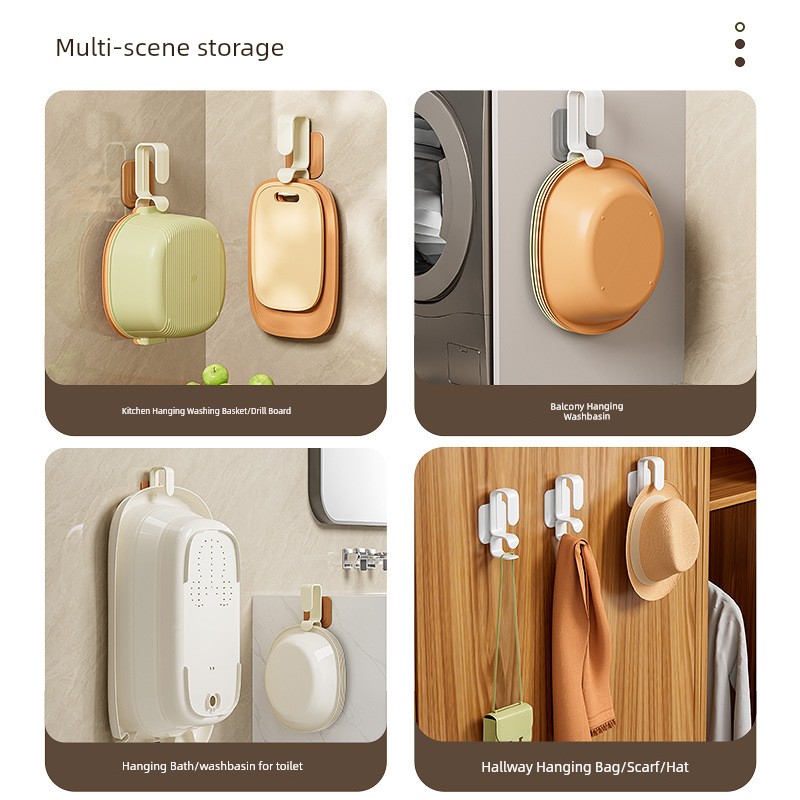 Кремовый крючок для раковины, без перфорации, для ванной комнаты, биде, утолщенный двойной крючок, большая вместимость, влагостойкая подставка для умывания