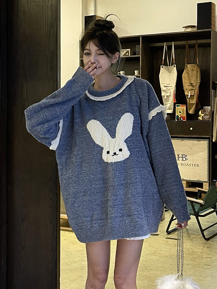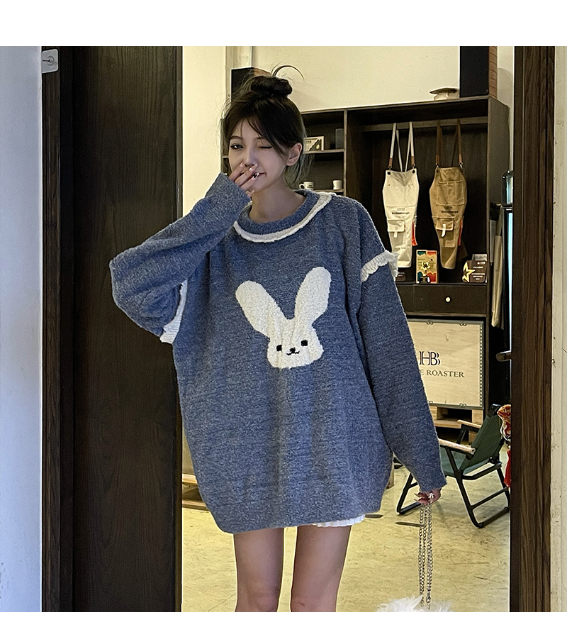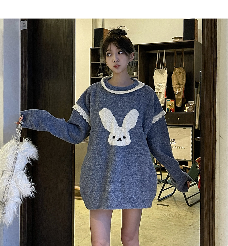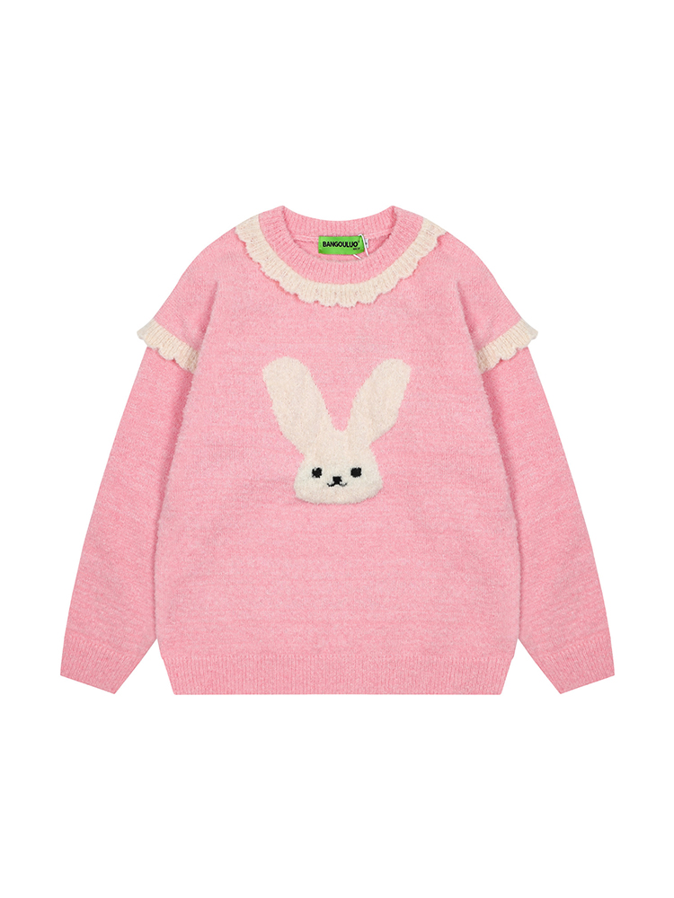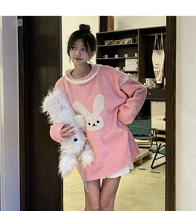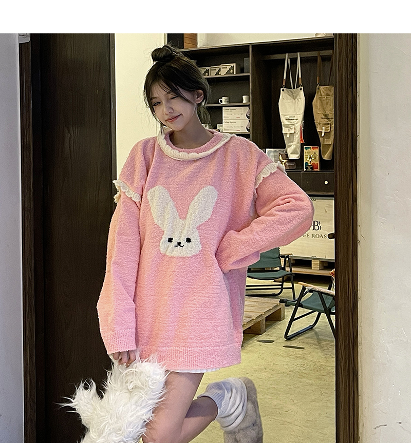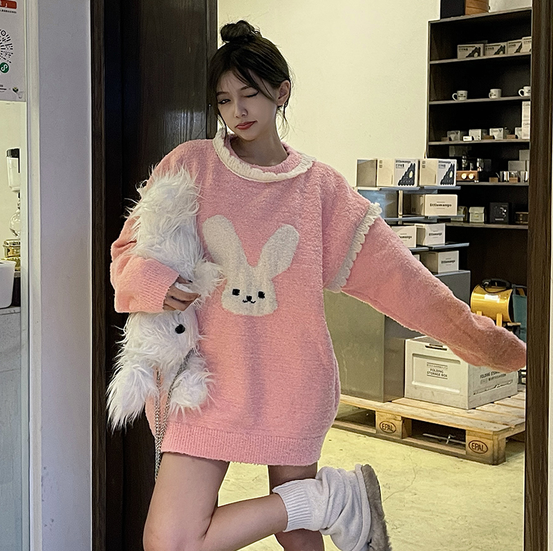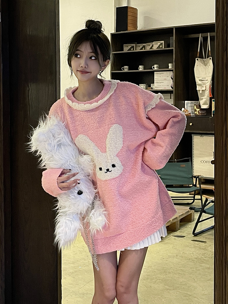 Милый мягкий пушистый свитер с кружевами и круглым вырезом, женский, новинка 2025, сладкий, антивозрастной, повседневный, легко сочетающийся, розовый трикотаж
