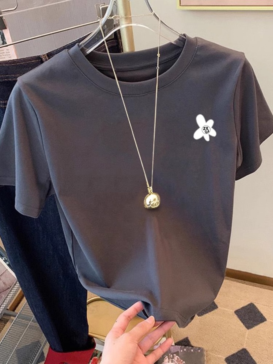 Темно-кофейная футболка с круглым вырезом и коротким рукавом, женская летняя, тонкая, 100% хлопок, свободная, стройнящая, простая, миниатюрный топ