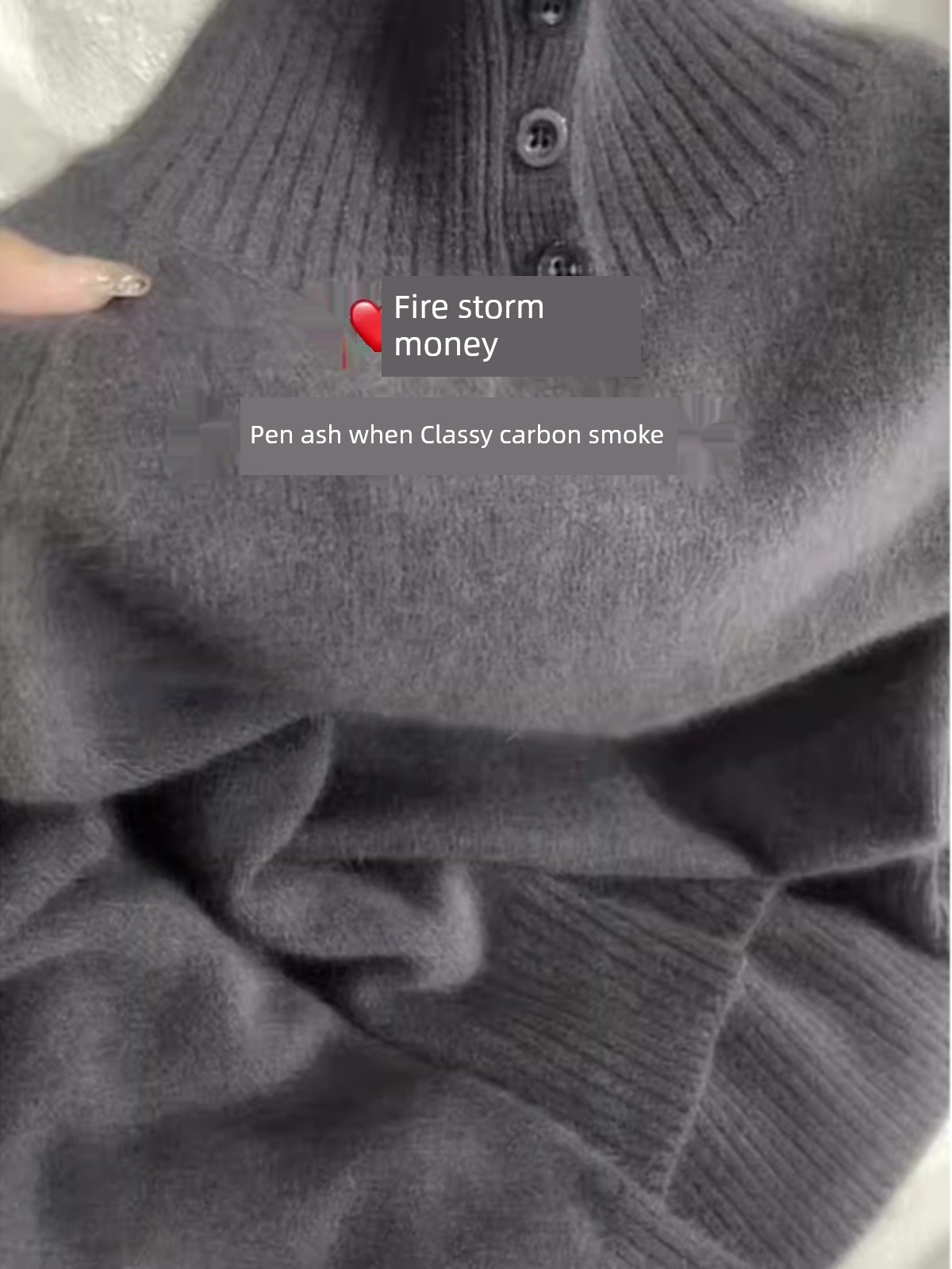 Темно-серый трикотаж с воротником-стойкой для женщин, весна и осень, новинка 2025, корейский стиль, ленивый стиль, шикарный, мягкий, гладкий, с длинными рукавами, рабочая одежда, свитер