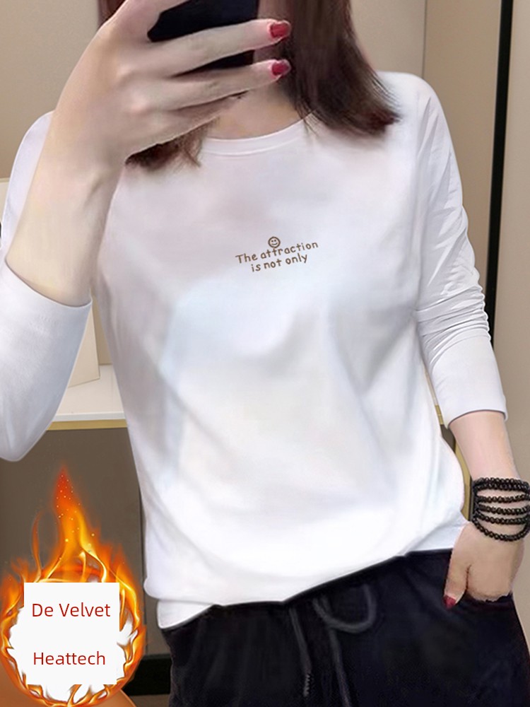 Двусторонняя нижняя рубашка из дрэлона для женщин, осенне-зимняя внутренняя одежда, флисовая, утолщенная футболка, свободная, легко сочетается, круглый вырез, брашированные топы, мода
