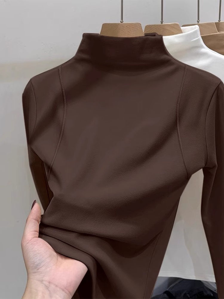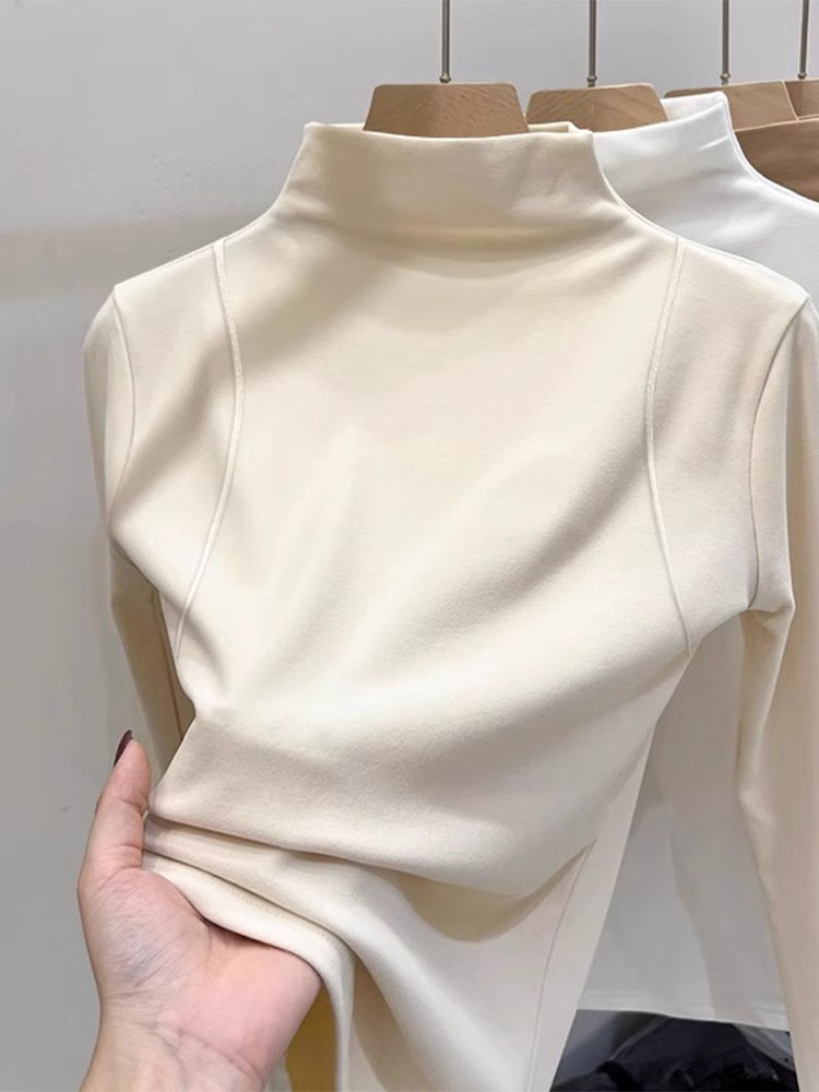 Двусторонняя рубашка из дралона для нижней одежды, женская одежда, новинка осени и зимы 2025, универсальная футболка с полувысоким воротником и флисовой подкладкой