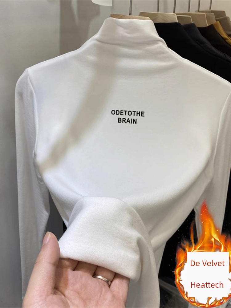 Женская двусторонняя футболка из джелона с полувысоким воротником и длинным рукавом, модная, осень-зима, утолщенная, для сохранения тепла, верхняя одежда, нижняя рубашка, топ