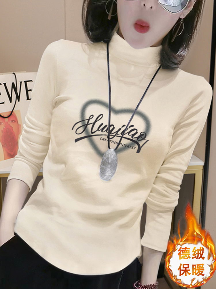 Двойная дралоновая нижняя рубашка с полувысоким воротником для женщин, новинка 2025, осень-зима, утепленная флисовая футболка с длинными рукавами, модная
