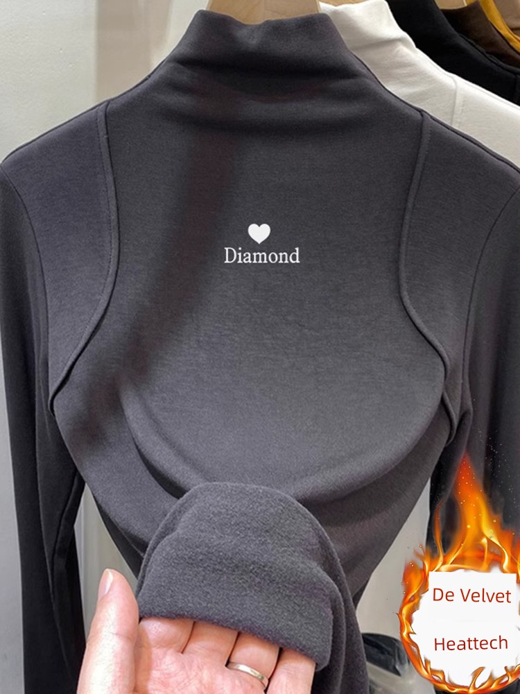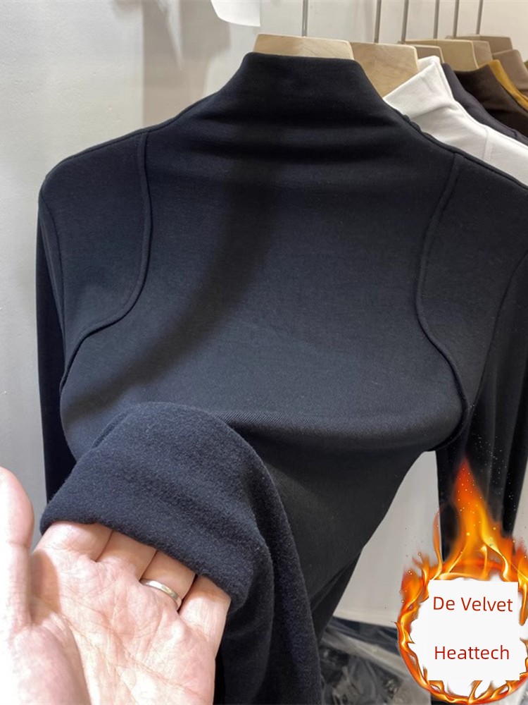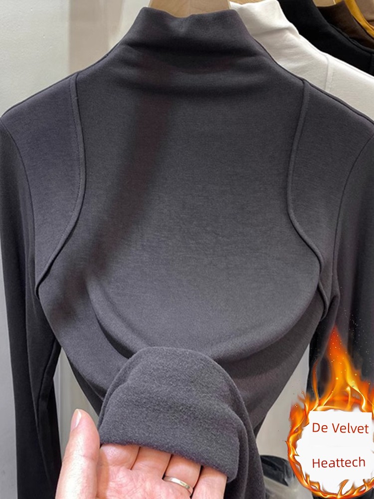Двусторонняя футболка из дралона с половиной воротника-гольф, женская, с флисовой подкладкой, утолщенная, с воротником-стойкой, внутренняя, плечевая, с длинным рукавом, женские термофутболки