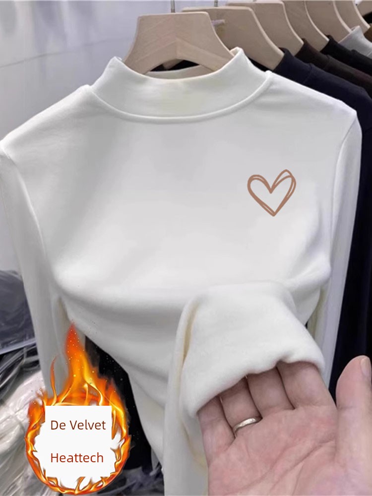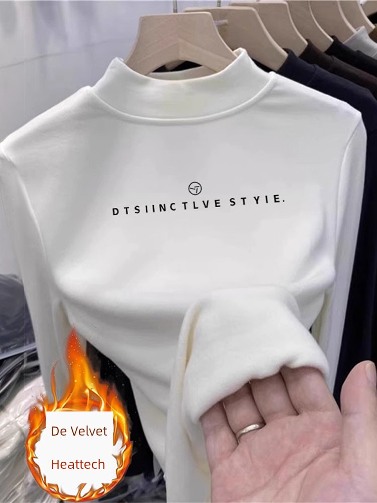 Двойная дралоновая теплая футболка с длинными рукавами, женская нижняя рубашка, новинка осени-зимы 2025, стройная, модная, с флисовой подкладкой, с полувысоким воротником