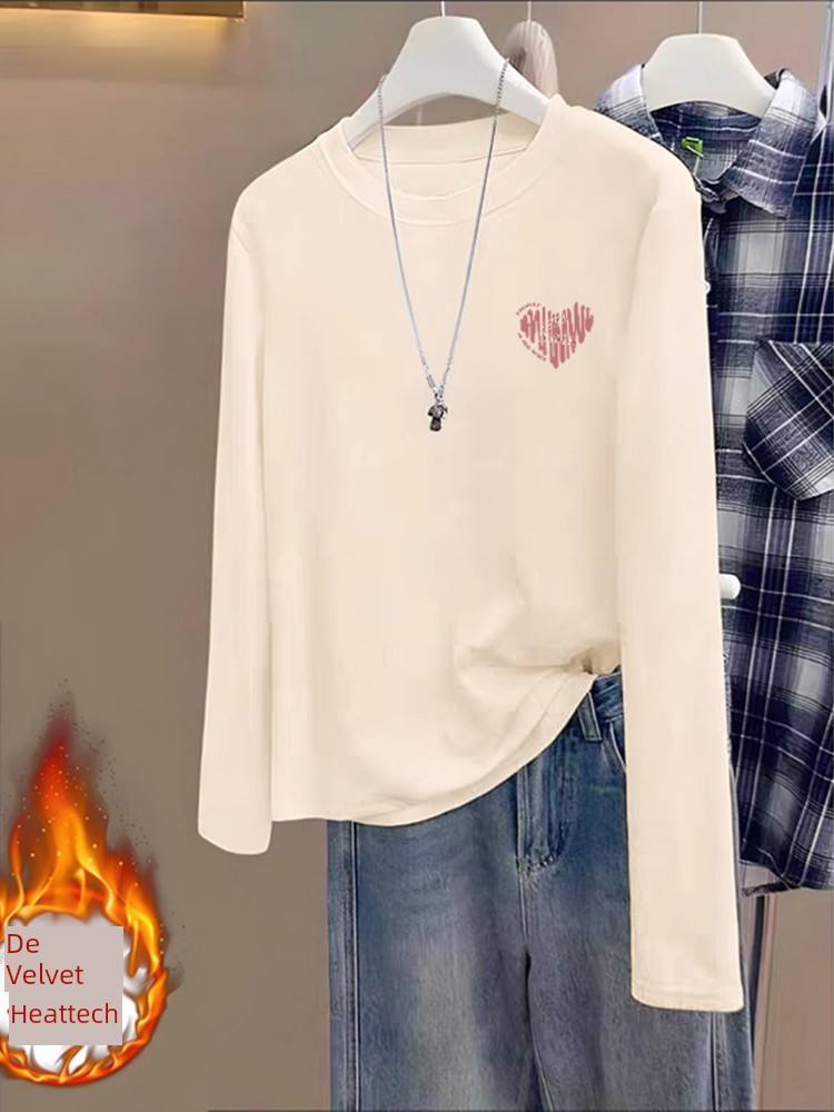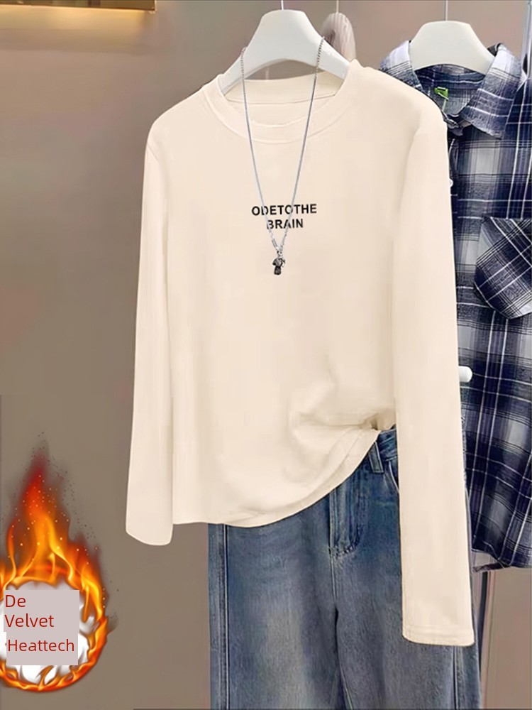 Белая нижняя рубашка из двустороннего дралона для женщин, осенне-зимняя, с флисовой подкладкой, утолщенная, внутренняя одежда, новинка 2025, приталенная футболка с длинным рукавом, топ