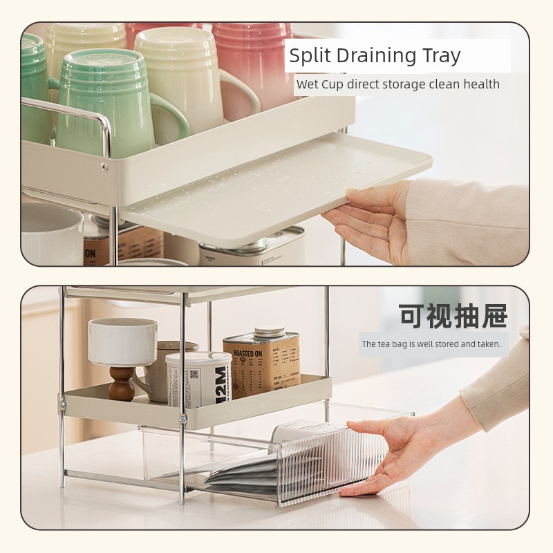 Двухъярусный настольный держатель для чашек Стойка для хранения чайного набора Дизайн для хранения чашек Домашний стеллаж для хранения винных бокалов