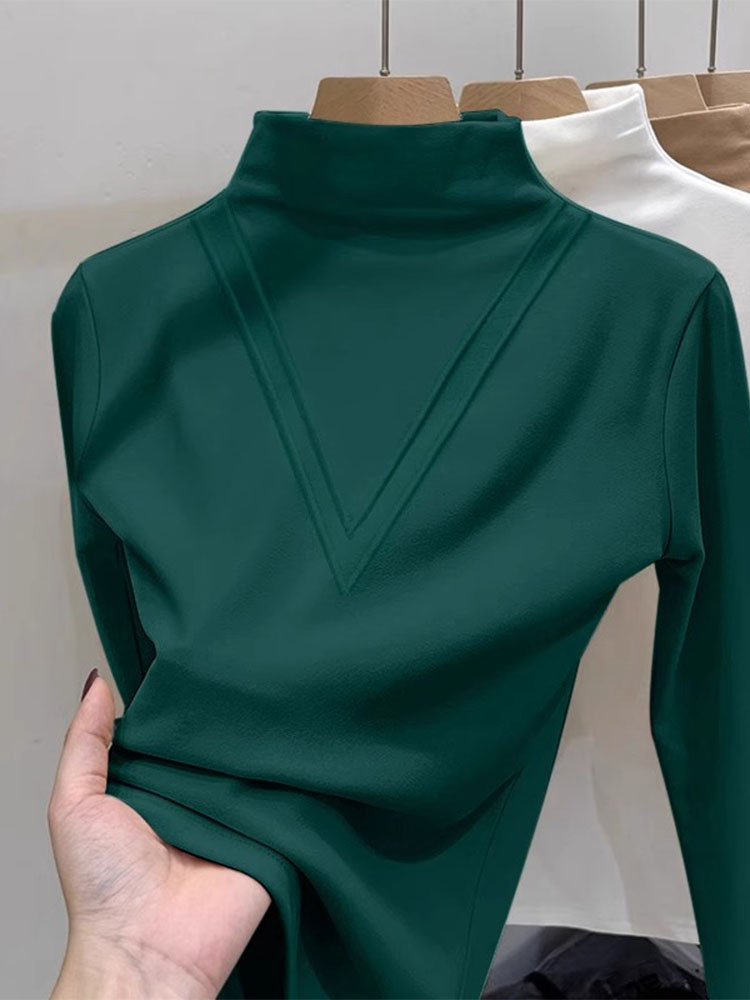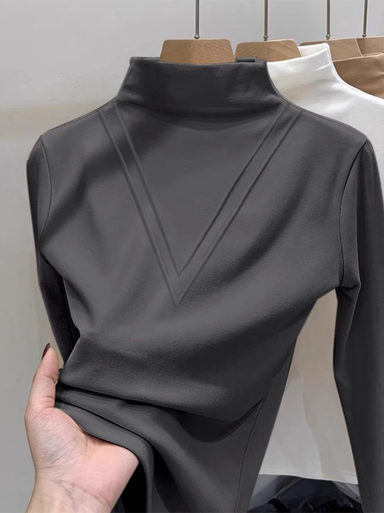 Женская термофутболка из дралона, осень-зима 2025, новинка, внутренняя, с половиной воротника-поло, утолщенная, весенне-осенняя футболка с длинным рукавом, европейский стиль, топ