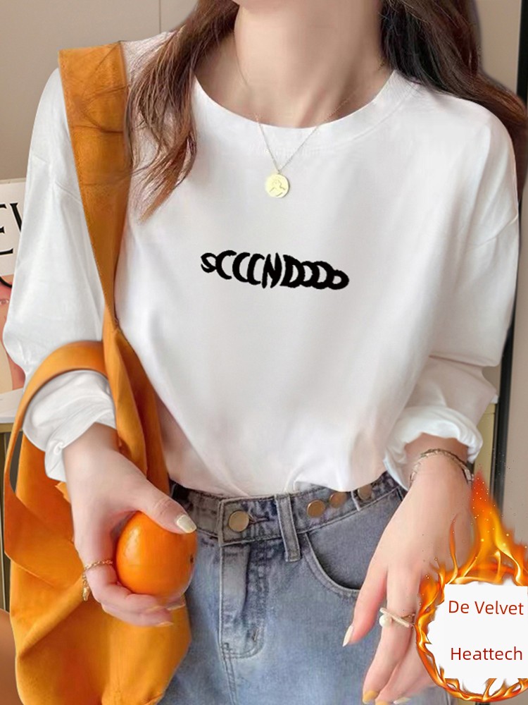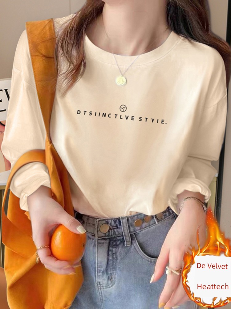 Женская футболка Dralon с длинным рукавом, весна-осень-зима, с флисовой подкладкой, 2025, новый модный утолщенный внутренний износ, шлифованная ткань, футболка с круглым вырезом