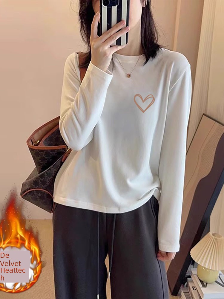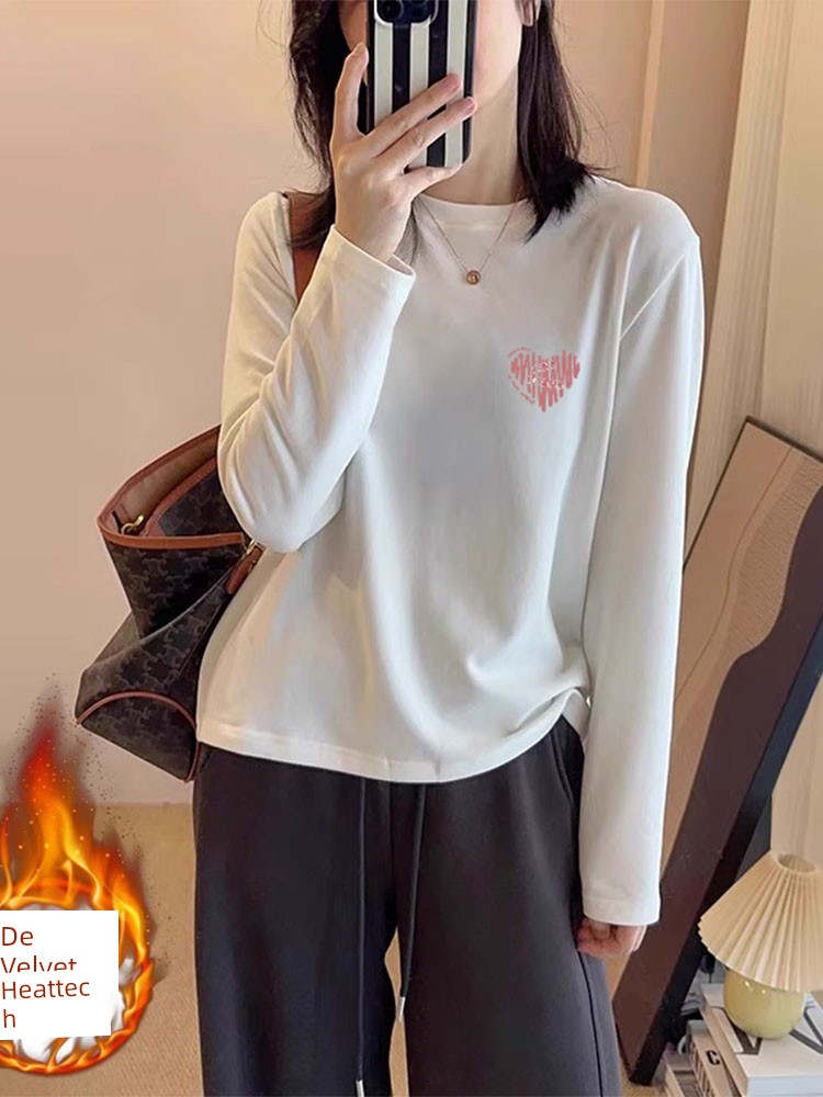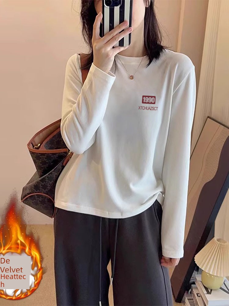 Футболка с круглым вырезом и длинными рукавами из брашированного дралона, женская, модная, универсальная, утолщенная, с белой подкладкой, нижняя одежда, осень и зима