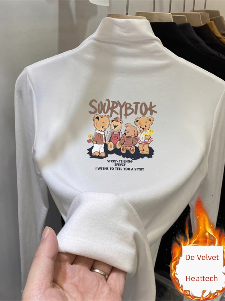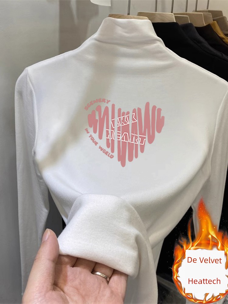 Женская футболка с полувысоким воротником и длинными рукавами из дралона, плечо в западном стиле, с флисовой подкладкой, набивная, сохраняющая тепло, нижняя рубашка, осень и зима