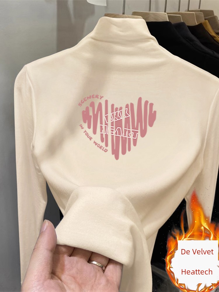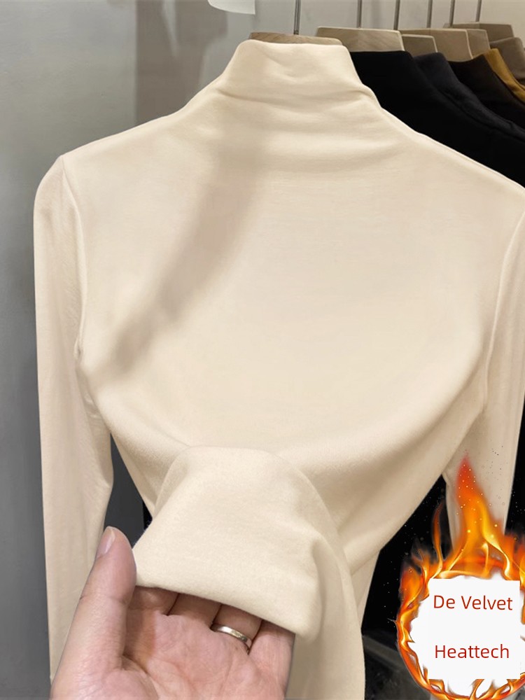 Женская футболка с полувысоким воротником из дралона, осенне-зимняя новинка 2025, женская футболка с длинными рукавами, уплотненная нижняя одежда, модный теплый топ в западном стиле