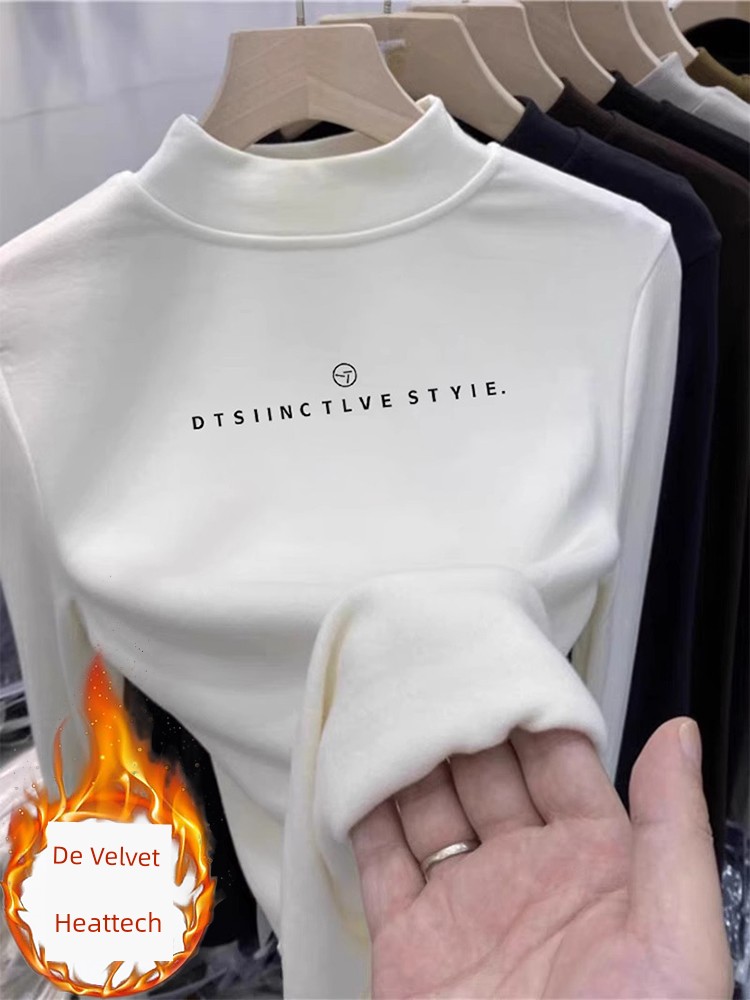 Полуводолазка Дралон, нижняя рубашка, женская, осень и зима 2025, белая футболка с длинным рукавом, женская, с подкладкой из флиса, утолщенная, внутренняя одежда, плечевые топы
