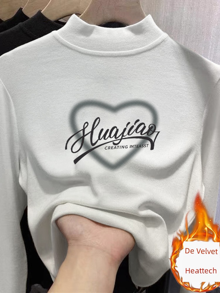 Женская нижняя рубашка-полуводолазка из дралона, осенне-зимняя нижняя одежда, приталенный топ со средним воротником, модная, с флисовой подкладкой, утолщенная, теплая футболка с длинными рукавами