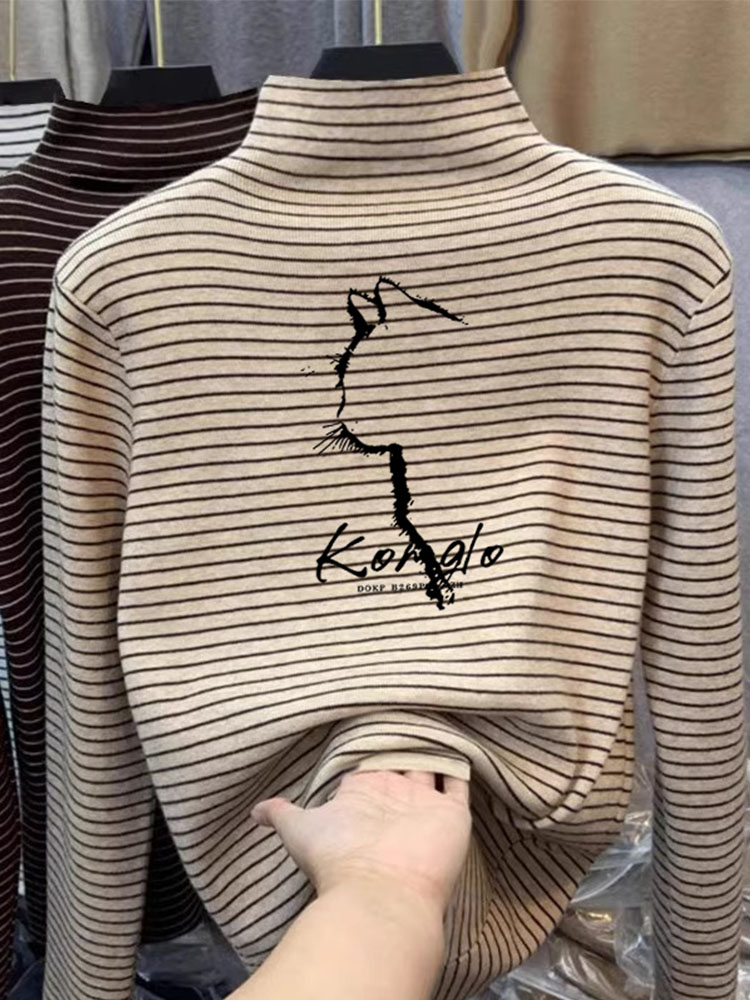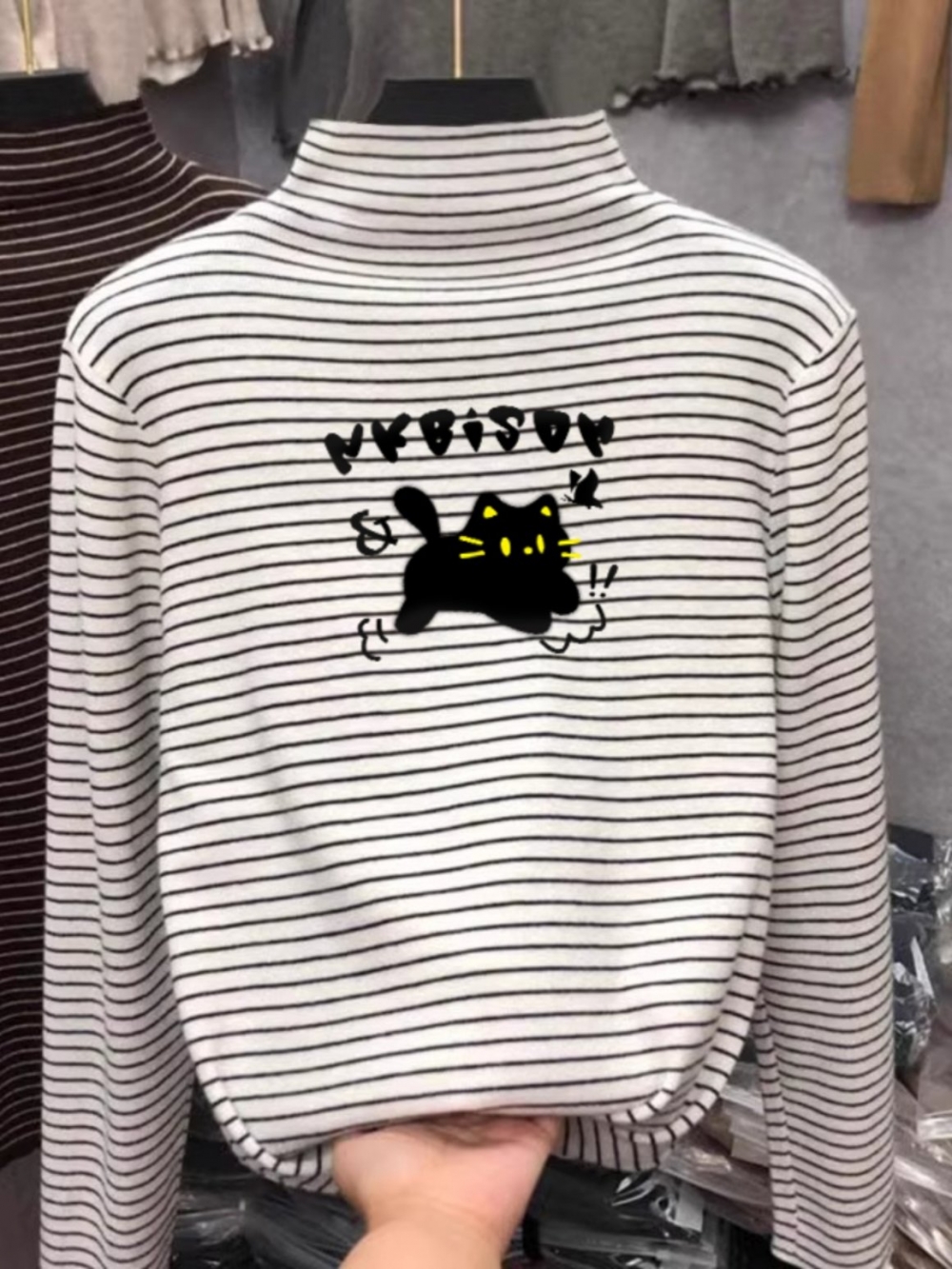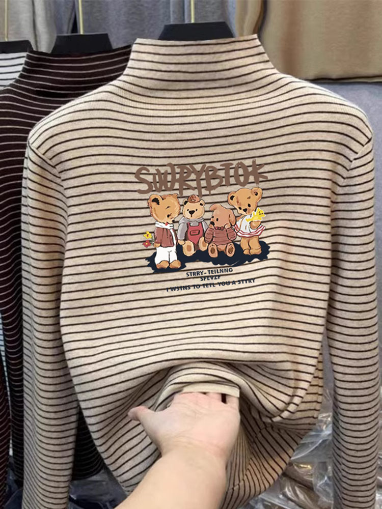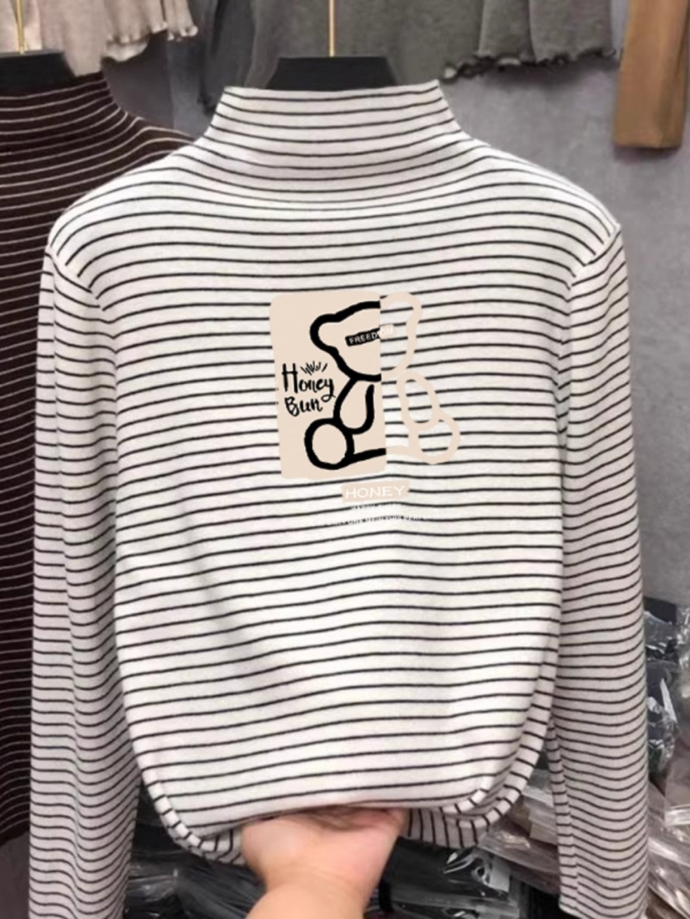 Водолазка из дралона с полувысоким воротом для женщин, новинка осени-зимы, облегающий, стильный, в полоску, с принтом медведя, футболка, нижняя одежда