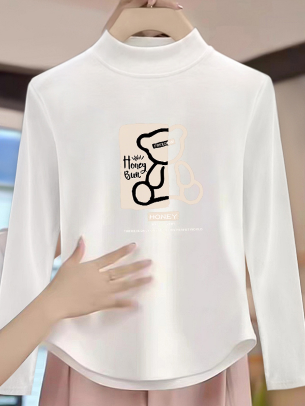 Женская нижняя футболка с полувысоким воротником из далона, новинка осени и зимы, утолщенная нижняя одежда, футболка с длинными рукавами с асимметричным подолом, стройнящий топ