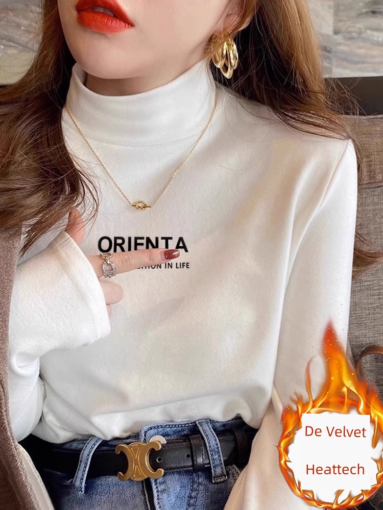 Водолазка из дралона с полувысоким воротом для женщин, осенне-зимняя одежда 2025, новинка, футболка с длинным рукавом, плотная, теплая, универсальная