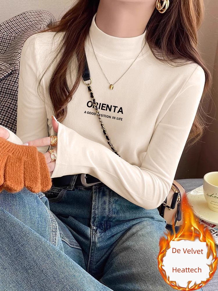 Женская нижняя рубашка Dralon с полувысоким воротником, осенне-зимняя одежда, новинка 2025, футболка с длинными рукавами, утолщенный топ в западном стиле Heattech