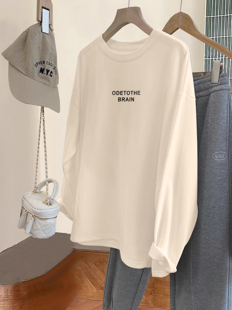 Женская футболка Dralon с круглым вырезом и длинным рукавом, новая осенне-зимняя модная повседневная футболка с принтом букв, утолщенная