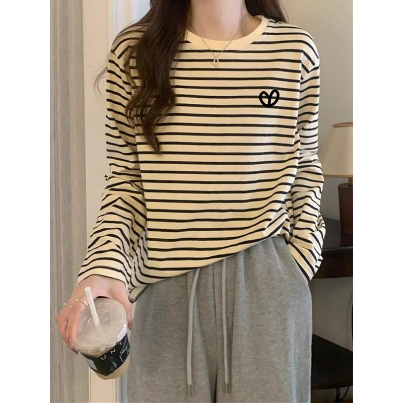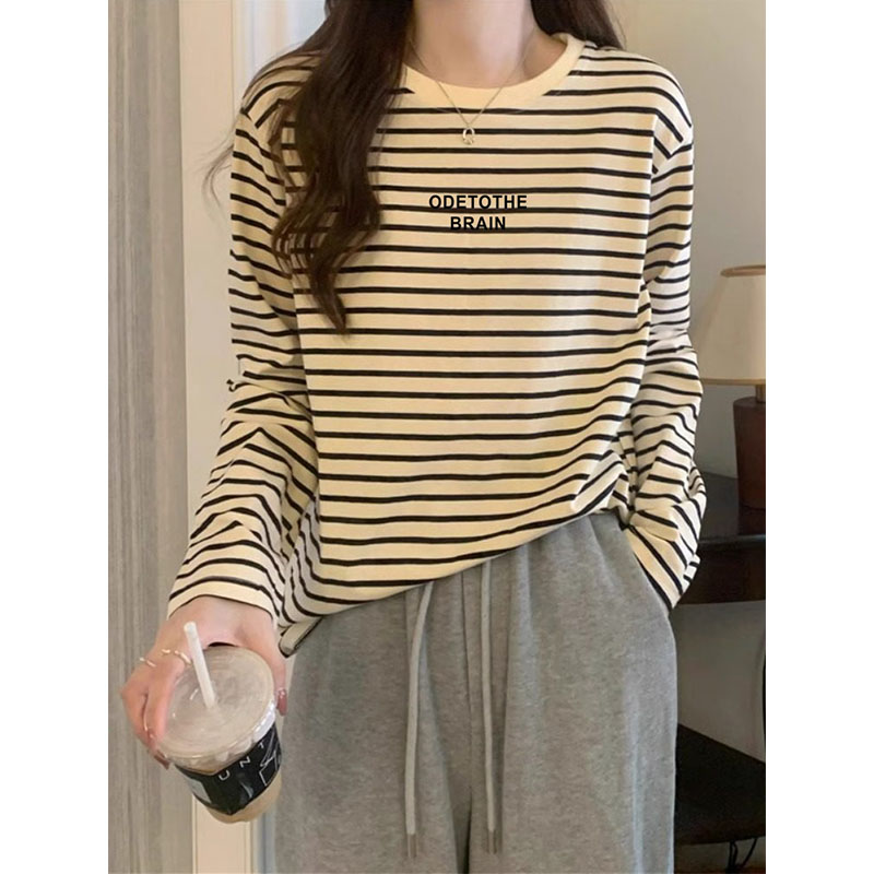 Женская футболка из дралона в полоску, с длинным рукавом, весна-осень 2025, новинка, с круглым вырезом, утолщенная, нательная рубашка в горизонтальную полоску