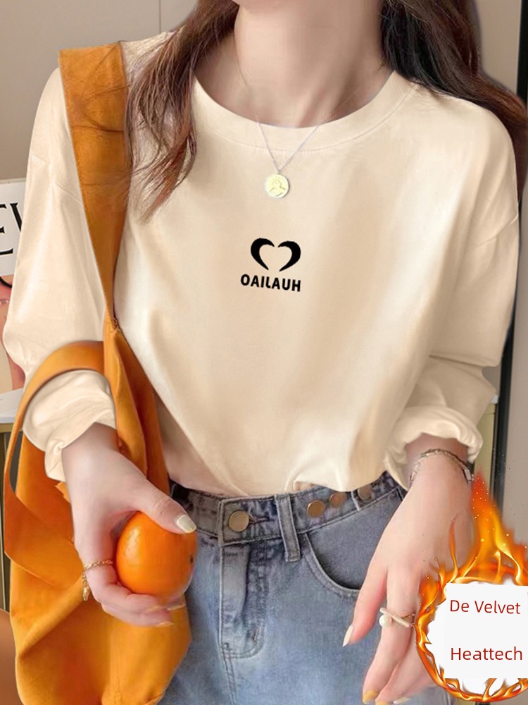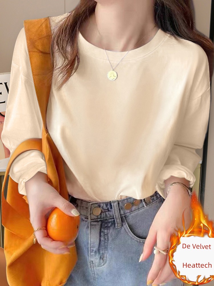 Футболка из драни с длинным рукавом, женская, новинка 2025, осень и зима, шикарный топ с флисовой подкладкой, утепленная, для нижнего белья