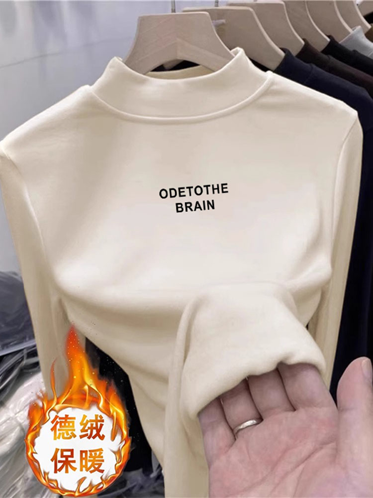 Дрань, теплая футболка с длинным рукавом, базовая рубашка, женская осенняя и зимняя новинка, западный стиль, облегающий, двусторонний, с вельветовым полуворотником, топ