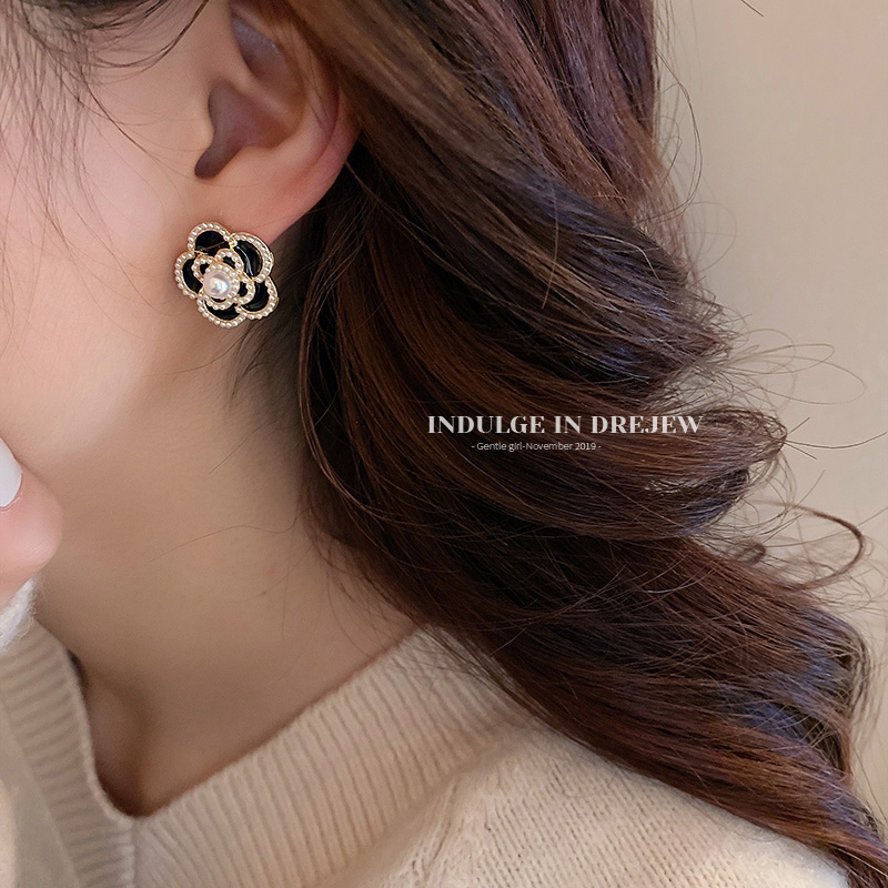 Серьги Drejew с жемчужной камелией, французский стиль, классический стиль, ретро-дизайн, гвоздики, сладкая элегантность, серьги онлайн-инфлюенсеров
