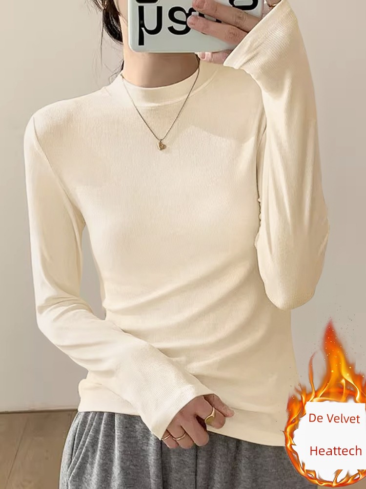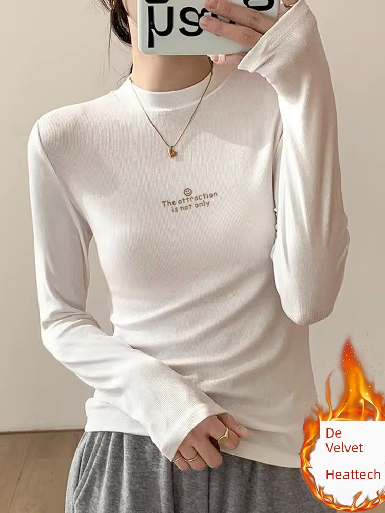 Европейские товары, полуводолазка, дралон, осень и зима, длинные рукава, нижняя рубашка, футболка, женская одежда, стройная, стройнящая, средний воротник, западный стиль, топ