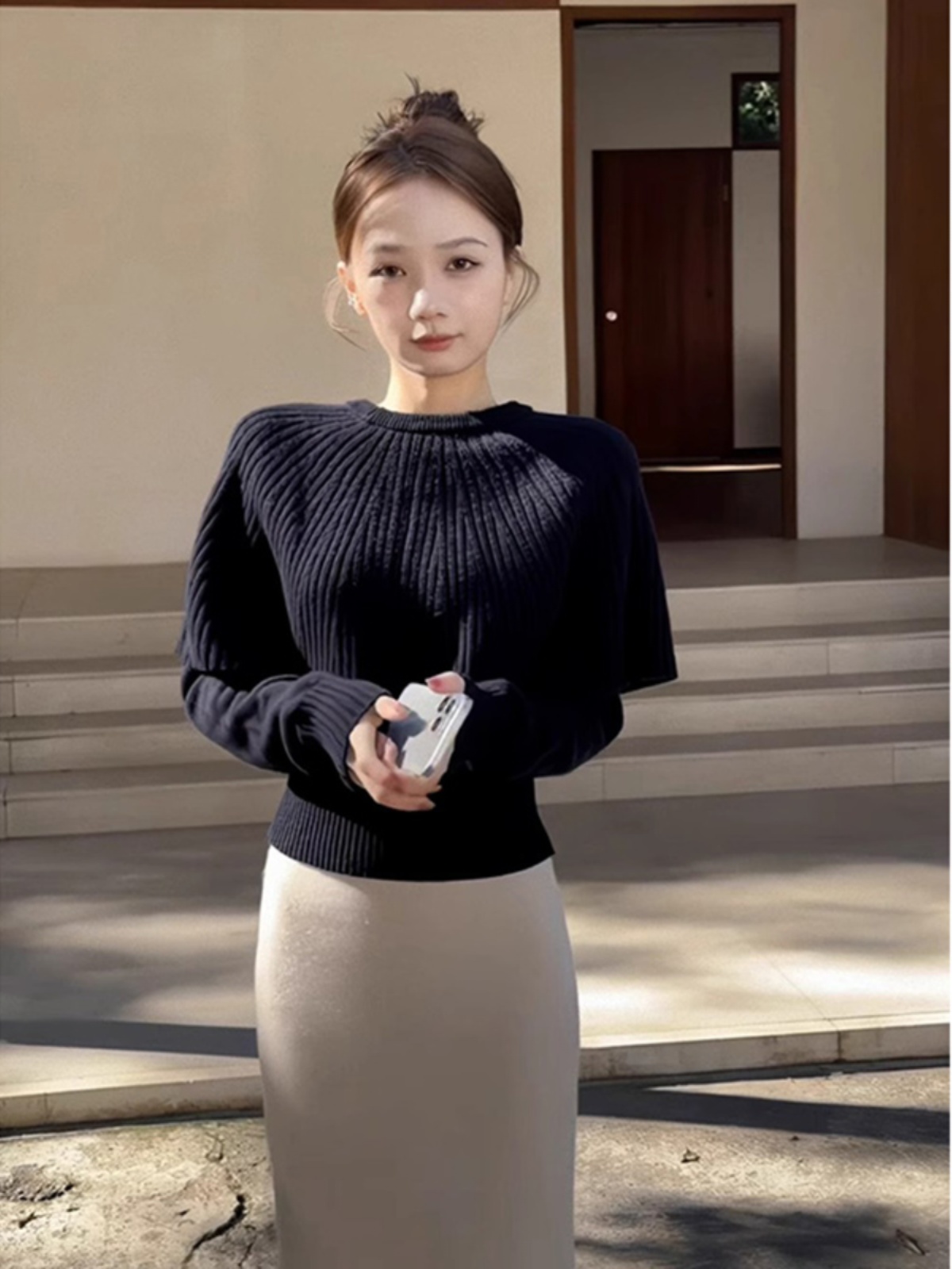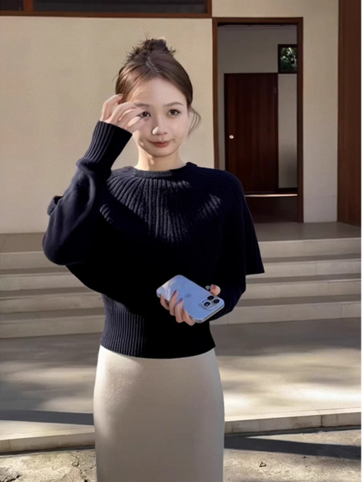 Европейские товары, нишевый стиль, красивый, вязаный свитер с круглым выретом и накидкой, новинка осени 2025, очень красивый, в западном стиле