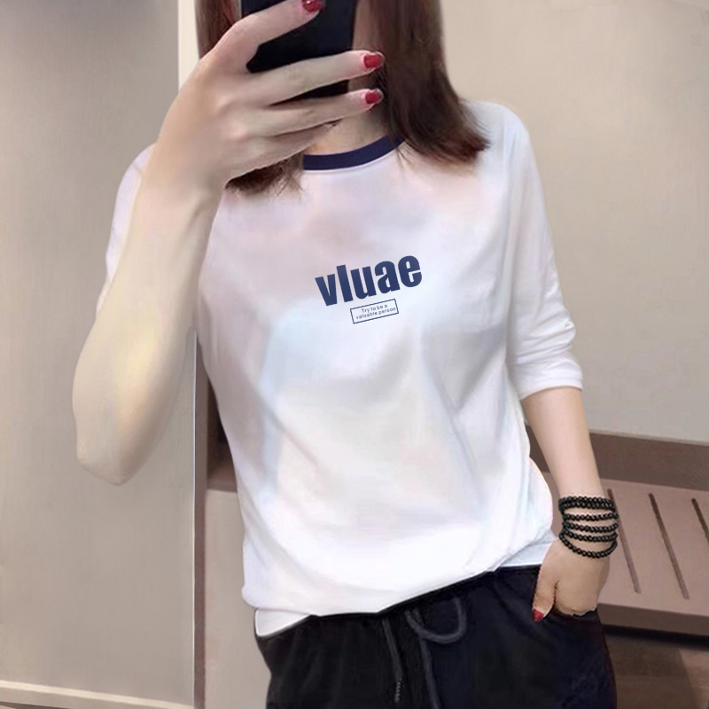 Европейские товары, чистое хлопковое футболка с рукавом 3/4, женская весна/лето 2025, новая модная контрастная цветовая гамма на плечах, самая простая в сочетании футболка