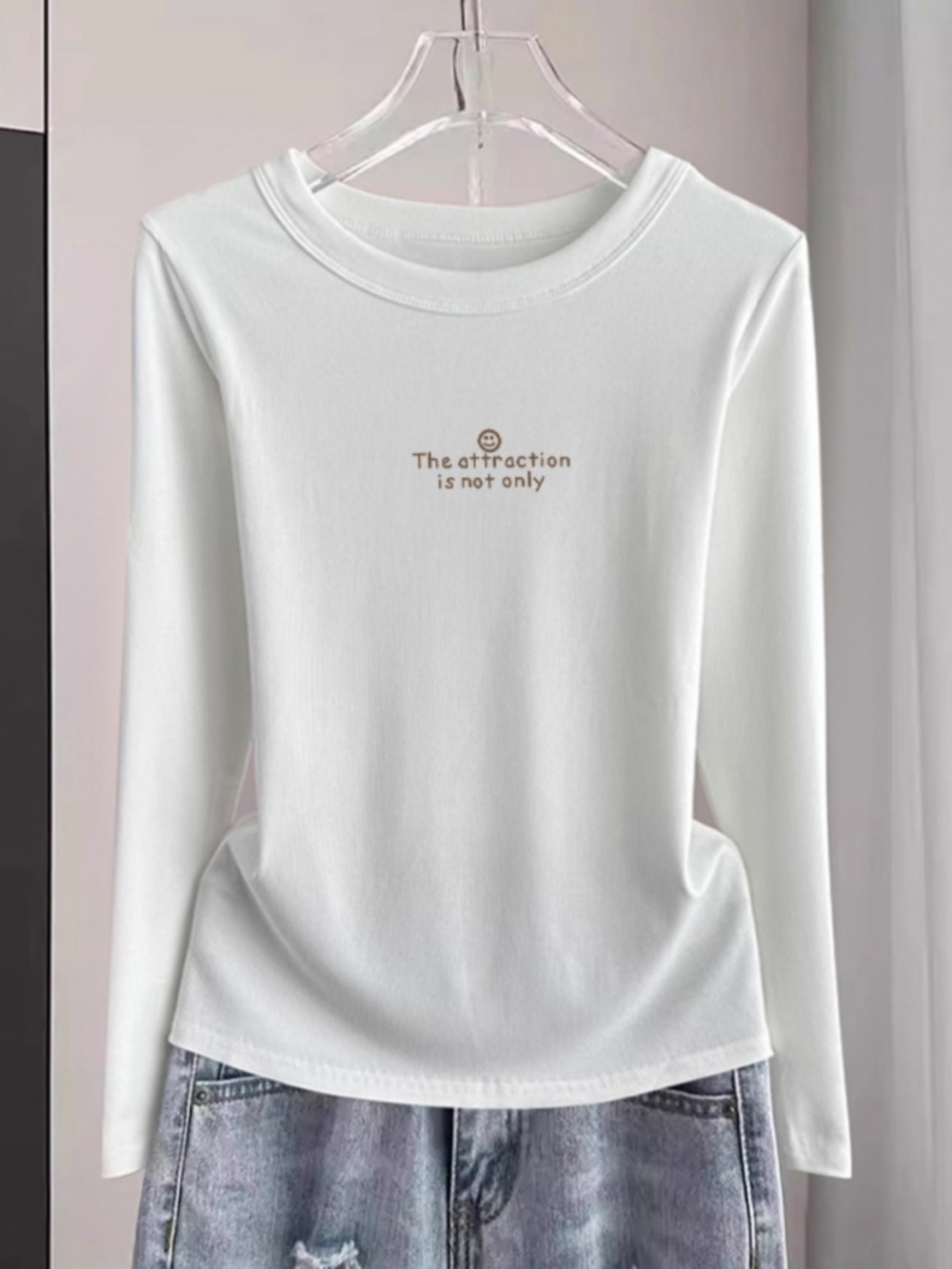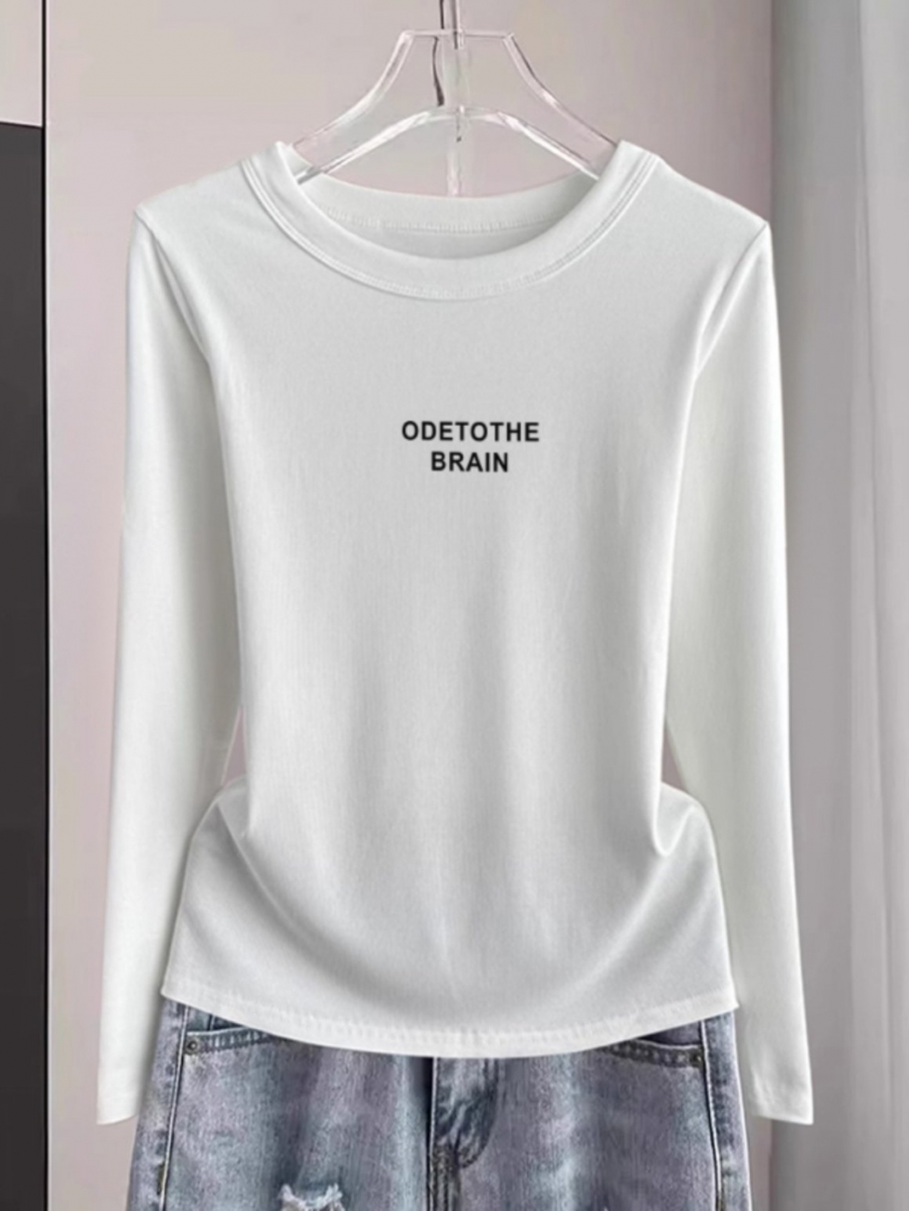 Европейские товары короткая байковая утолщенная белая футболка женская с длинным рукавом новое поступление осень-зима свободная стройнящая нижняя рубашка топ