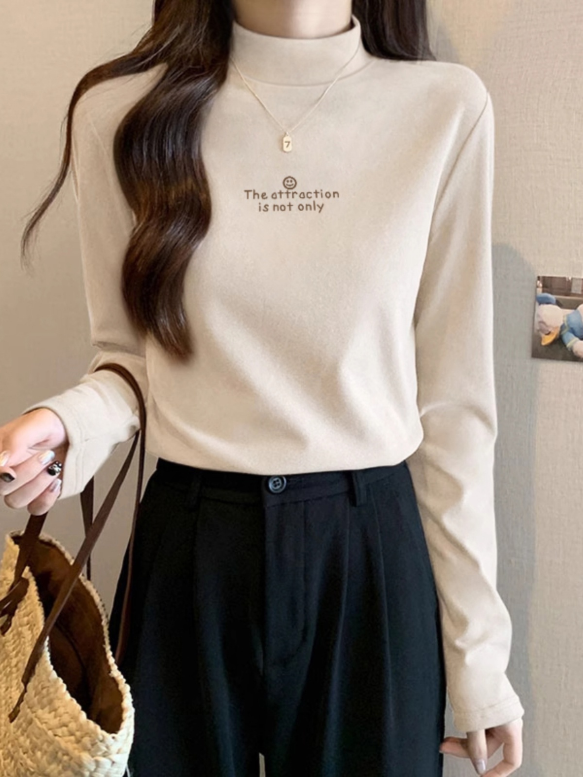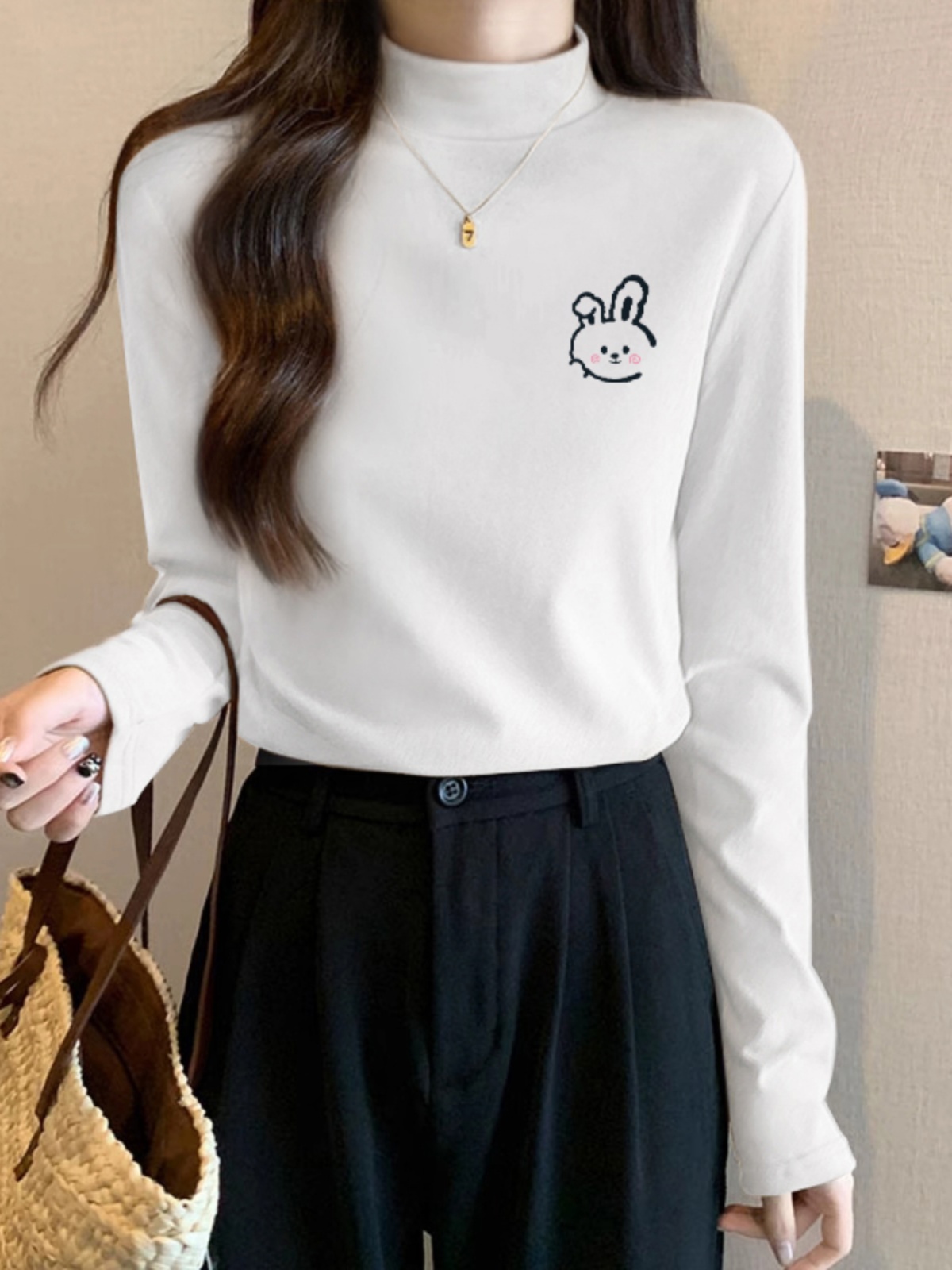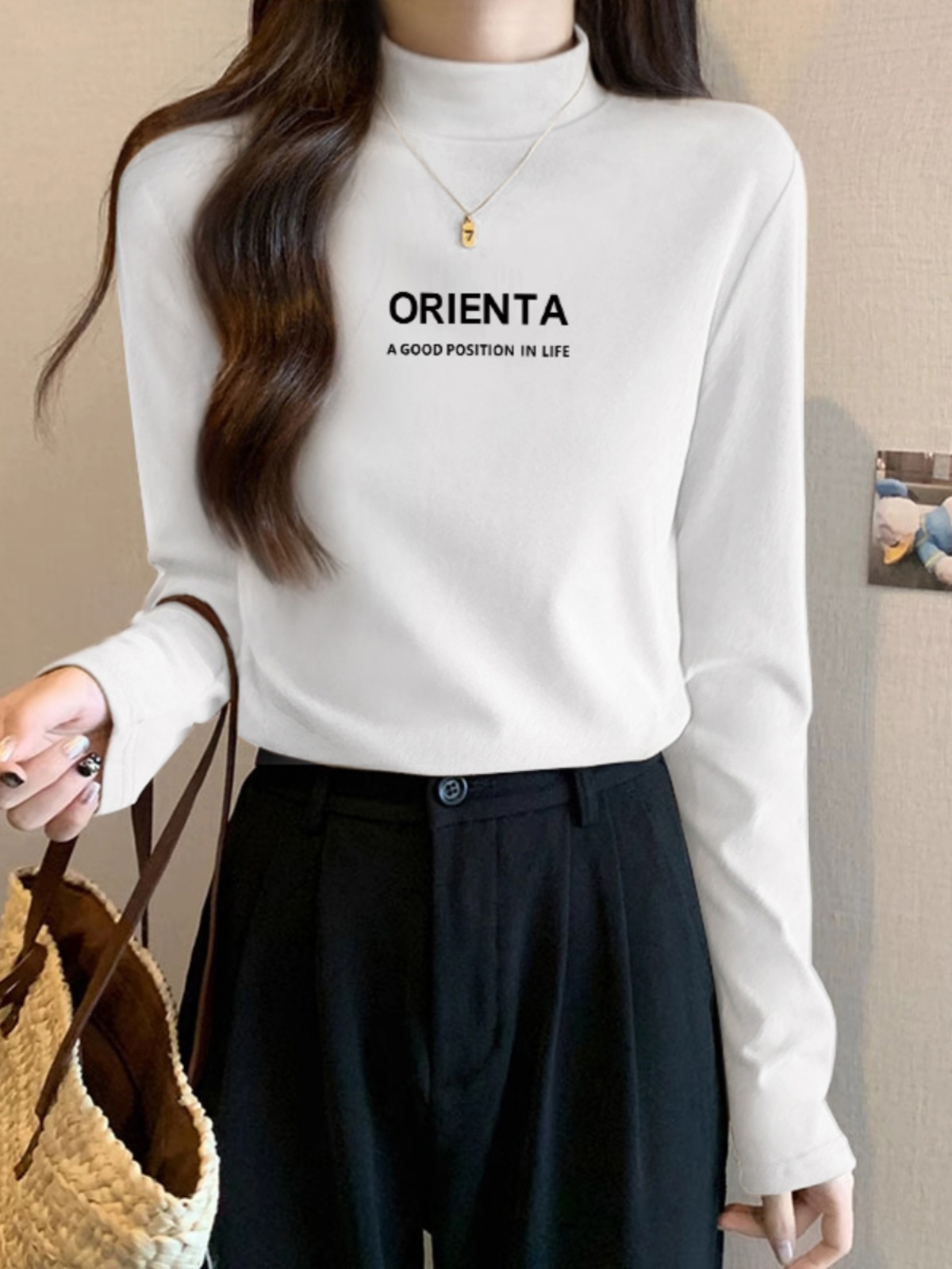 Европейские товары, белая хлопковая рубашка с полугольфом для женщин, осень/зима 2025, тонкий, стройный силуэт, принт, внутренняя одежда, футболка с длинными рукавами Ins