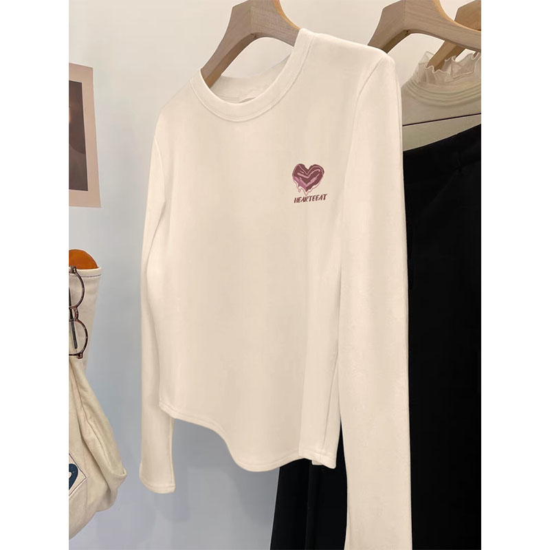 Европейские товары белая футболка из чистого хлопка с длинным рукавом женские облегающие топы весна 2025 новинка модный круглый вырез нижняя рубашка внутренняя одежда