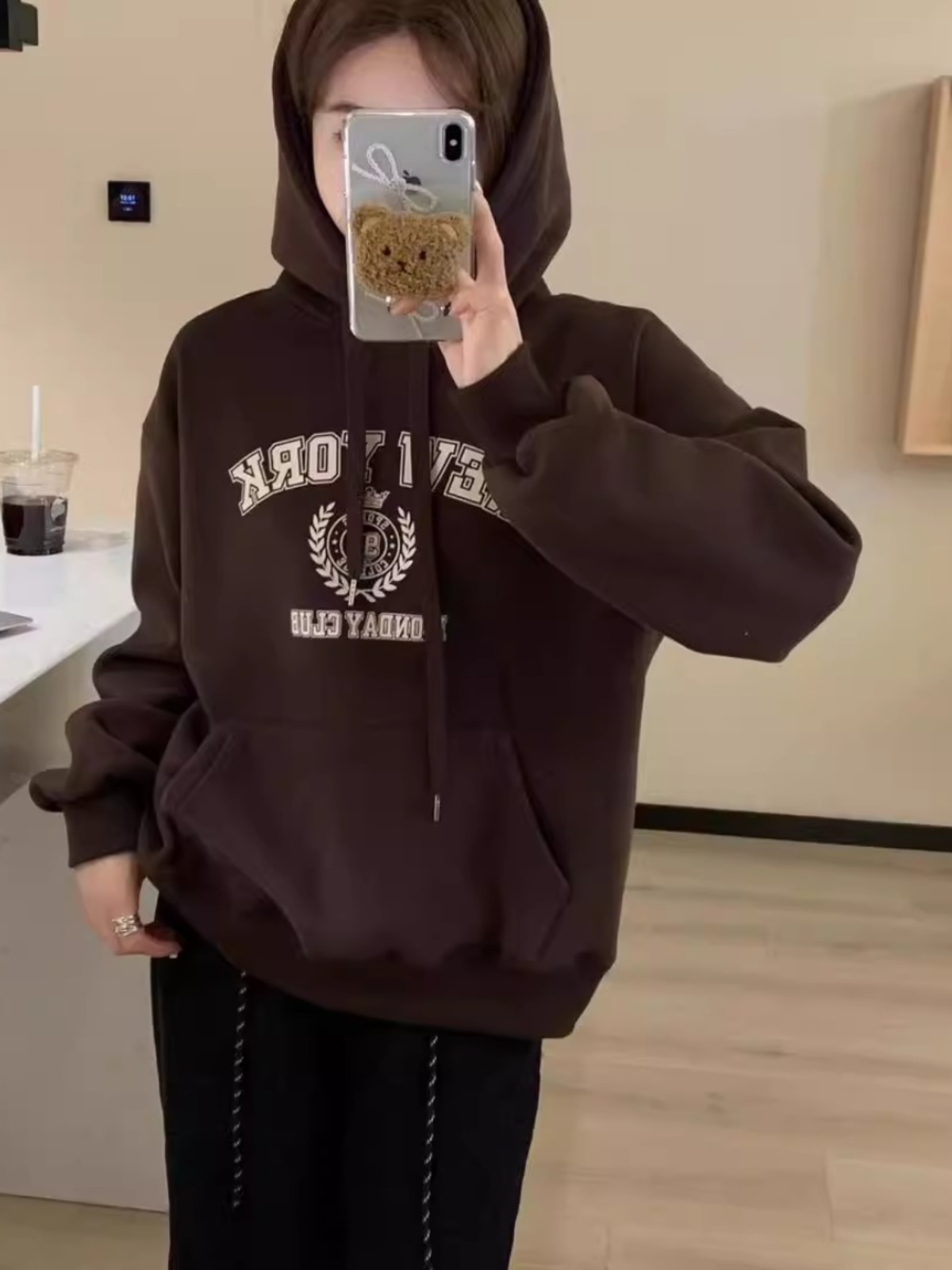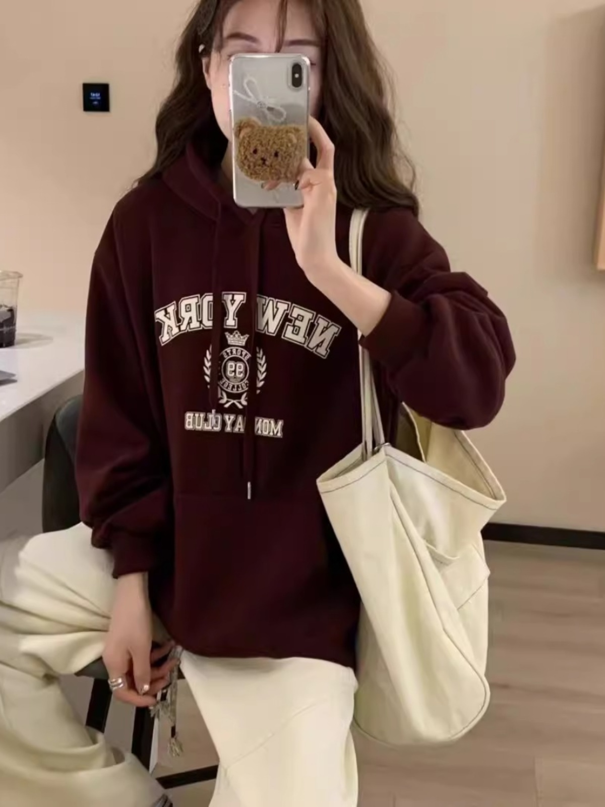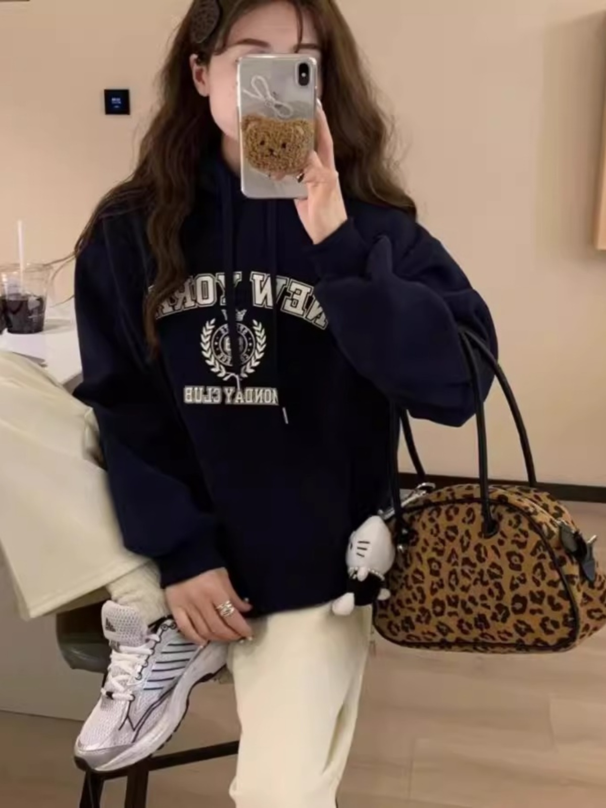Европейская станция 2025 Осенняя одежда Новинка Европейские товары Универсальный пуловер с капюшоном и принтом букв Женский весна и осень Повседневный свободный топ