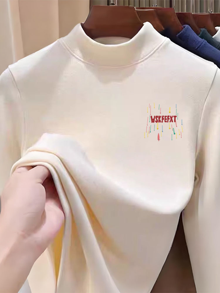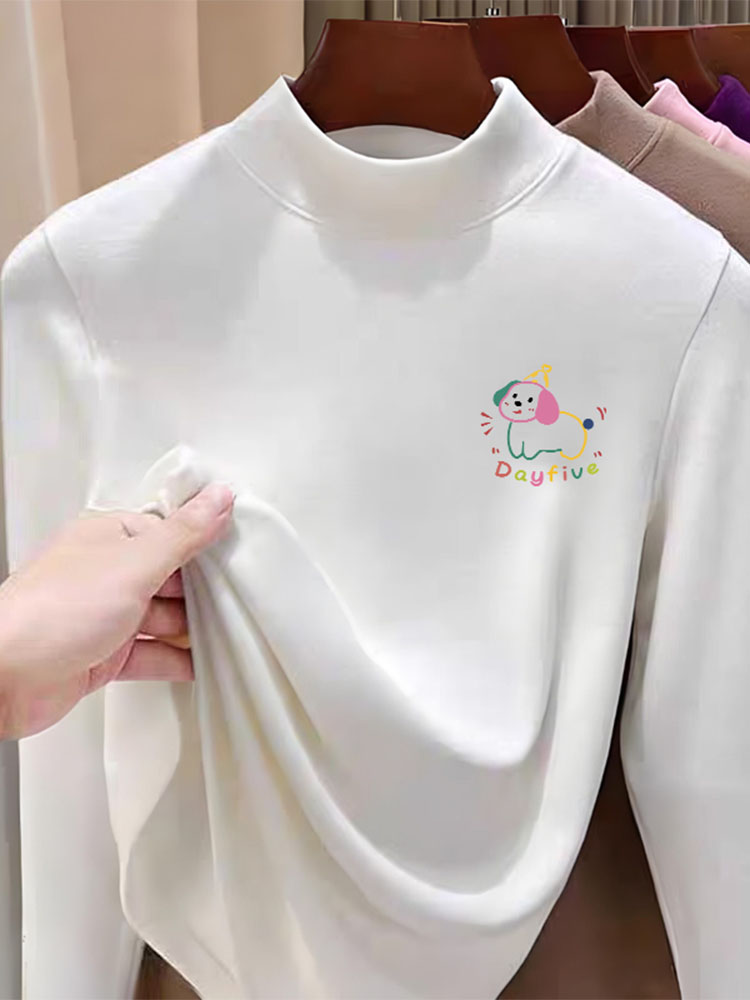 Европейский стиль, осень и зима, новое поступление, белая приталенная рубашка с полувысоким воротником и длинными рукавами, женская нижняя рубашка из дратлон с принтом сердца, топ