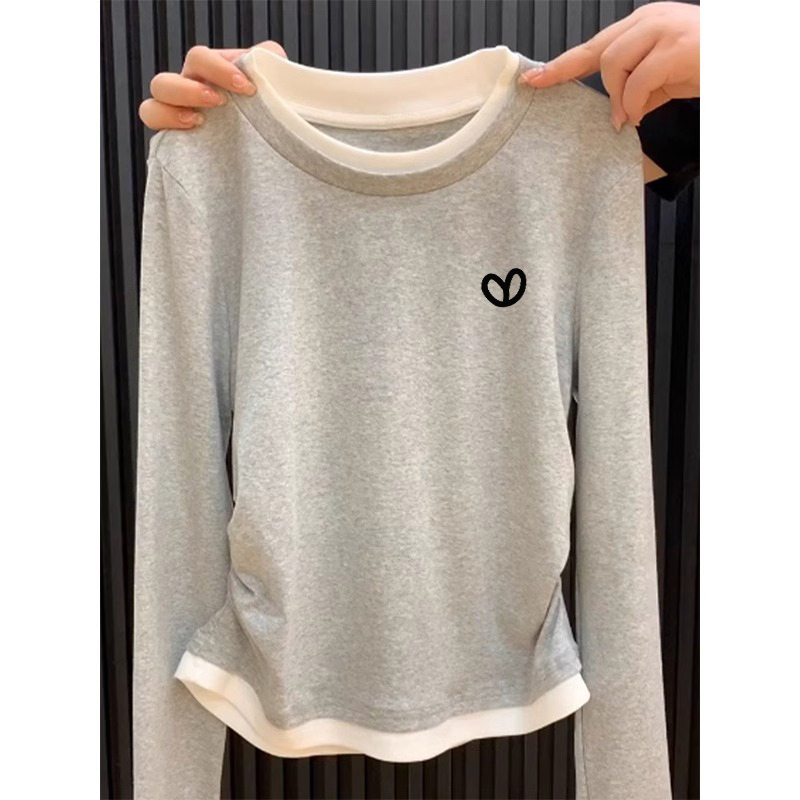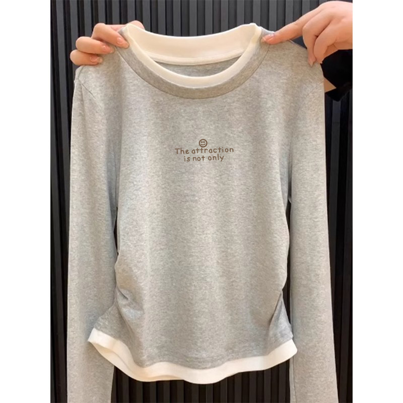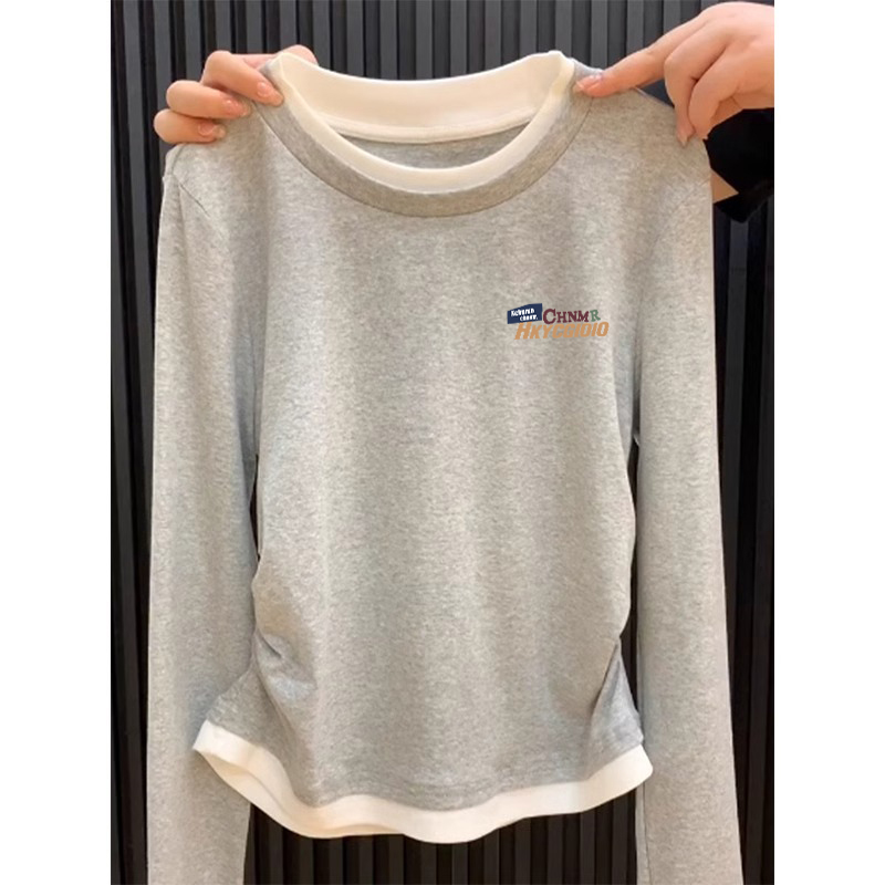 Женские нижние рубашки с двумя элементами, осень и зима, дюшес, новая модная футболка с длинными рукавами, стильная толстовка, короткие топы