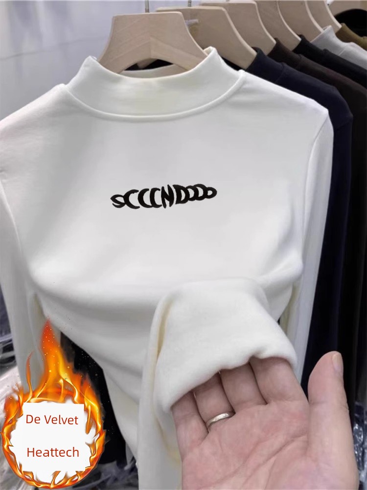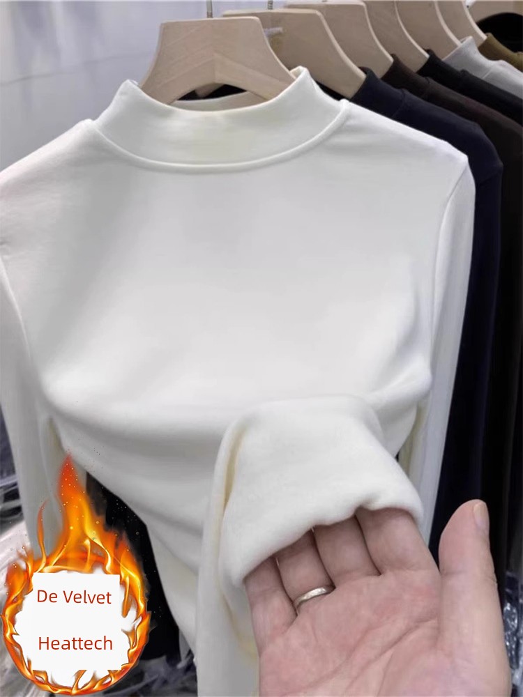 Осенне-зимняя футболка из дралона с половиной воротника-гольф, женский уникальный маленький топ, белая футболка с длинным рукавом, внутренняя одежда, Heattech, модная нижняя рубашка