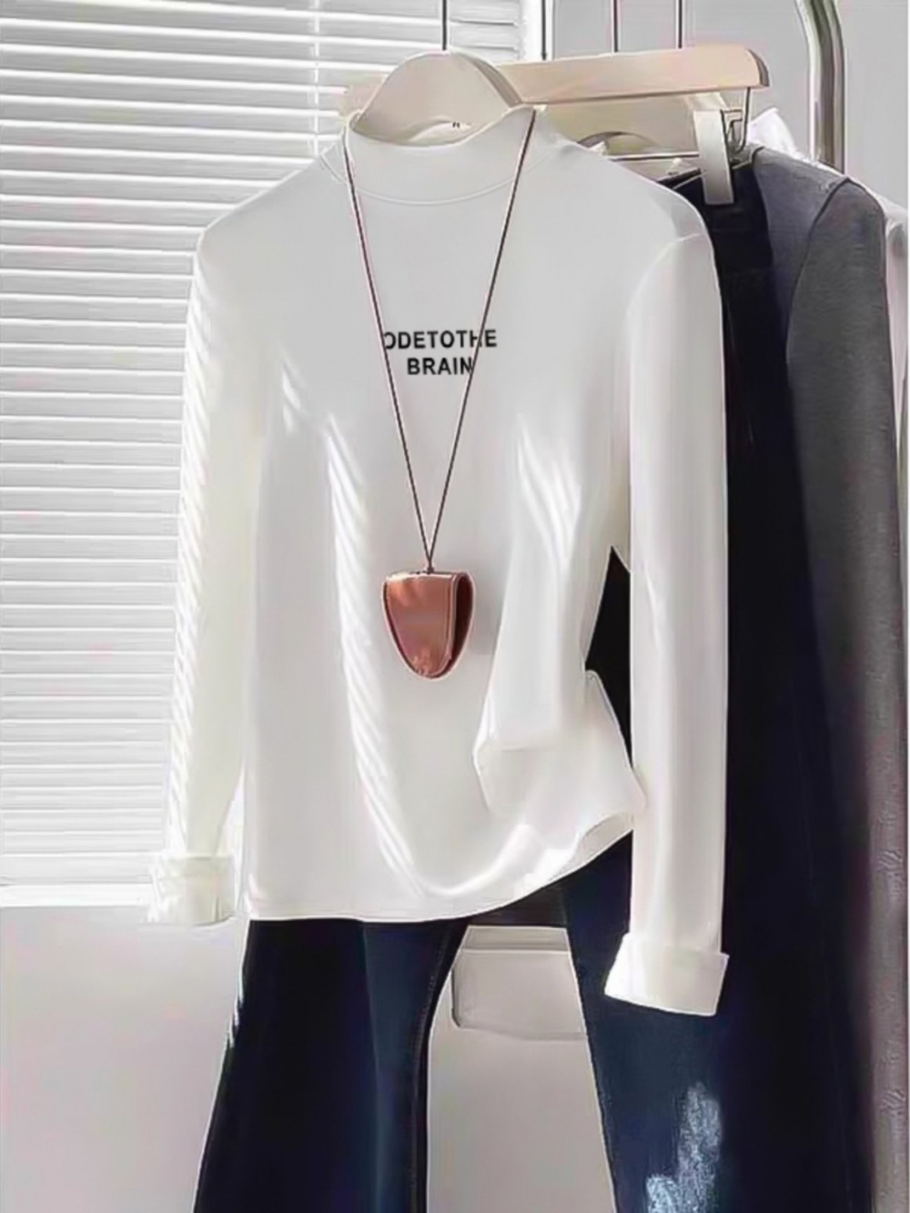 Женская футболка с длинным рукавом с воротником-стойкой для осени и зимы, нижняя рубашка, белая, с полувысоким воротником, может носиться как верхняя одежда, с начесом, термо, приталенная