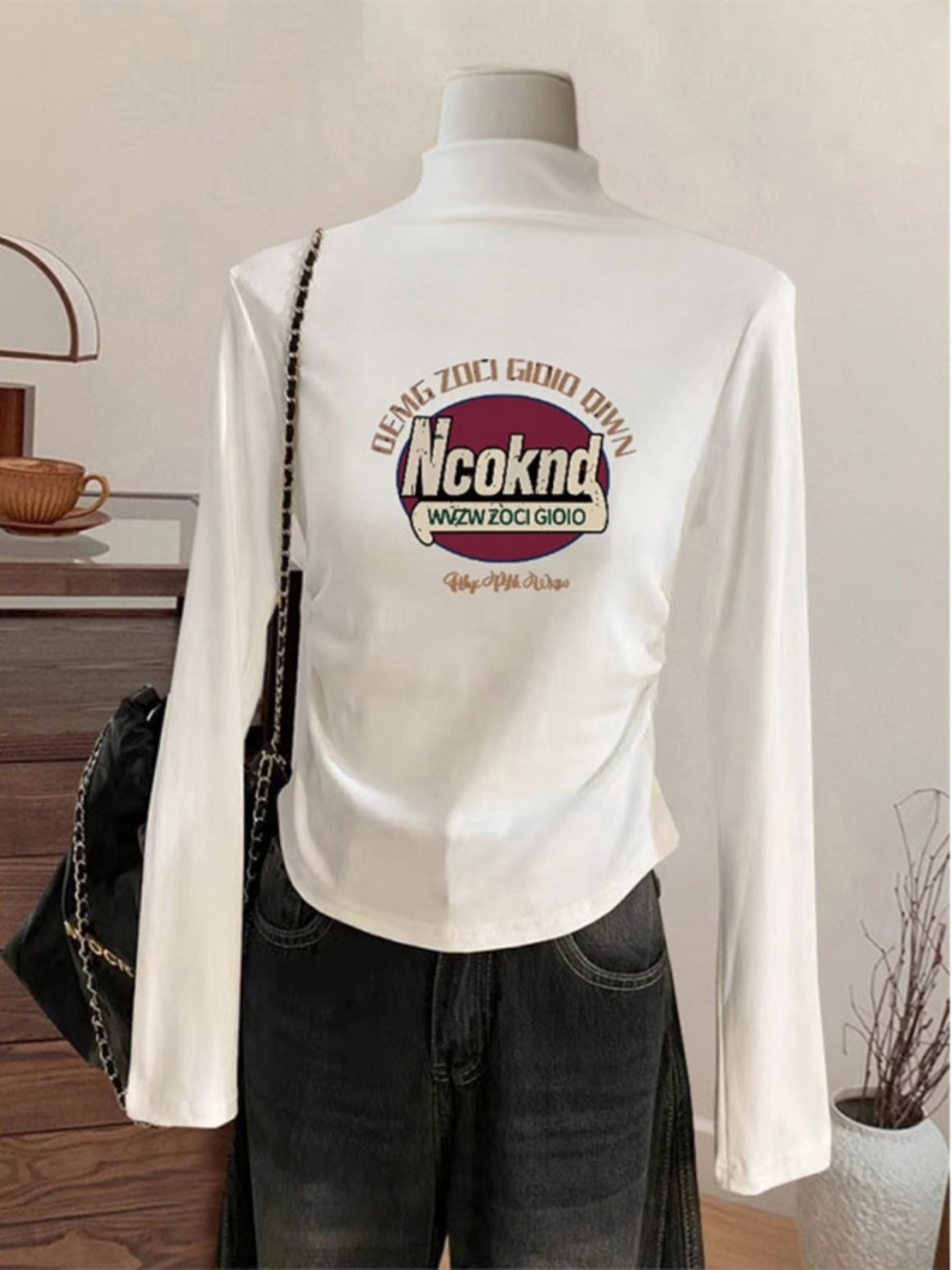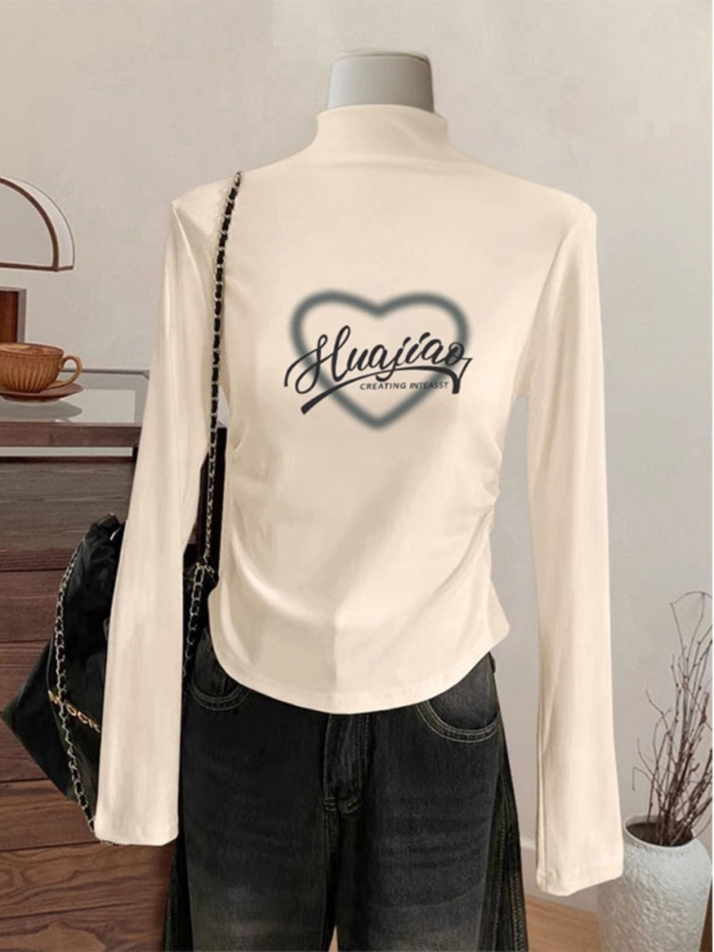 Новое поступление осень-зима, двусторонняя футболка из дралона с полувысоким воротником и длинными рукавами, женская внутренняя модель, утепляющая, с нижним краем в виде круговой дуги