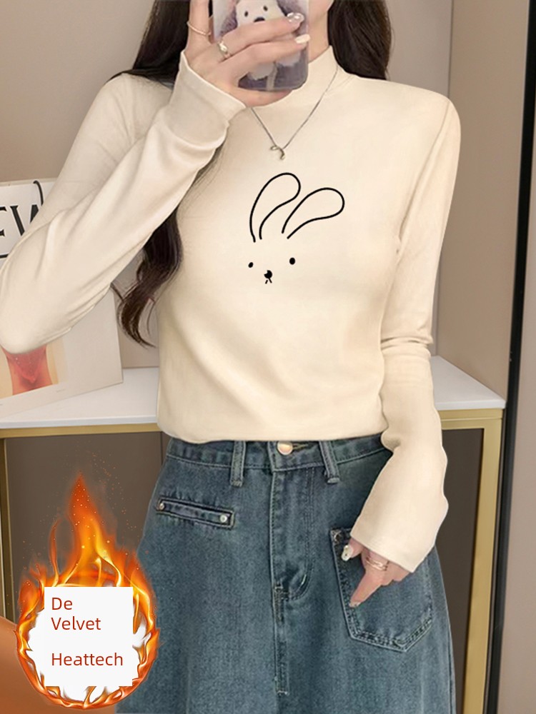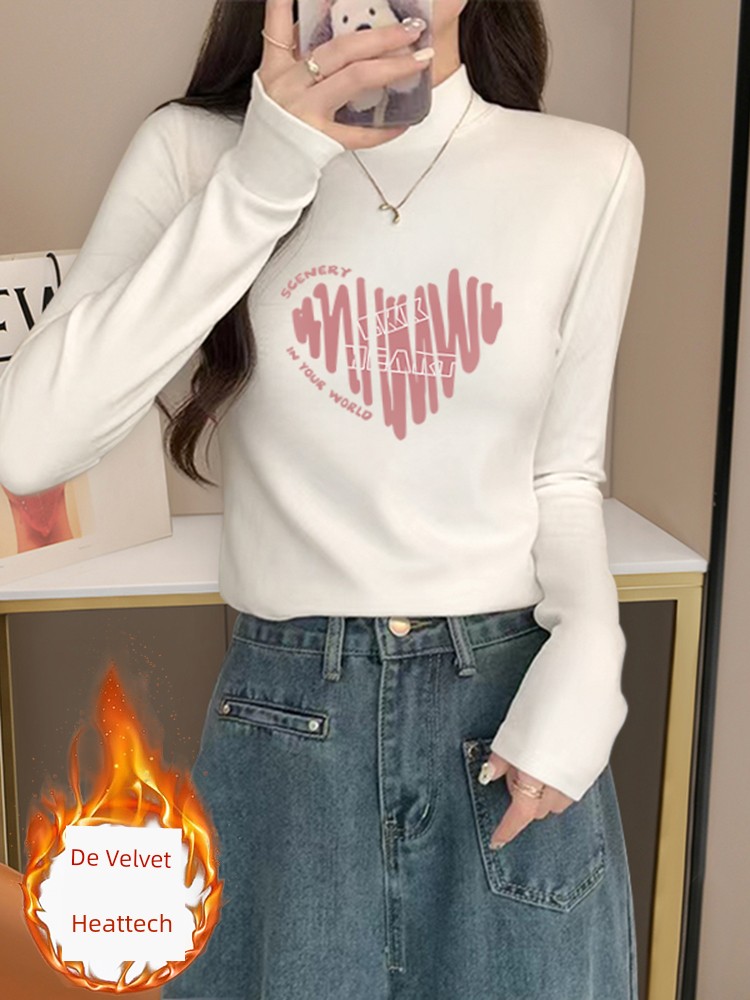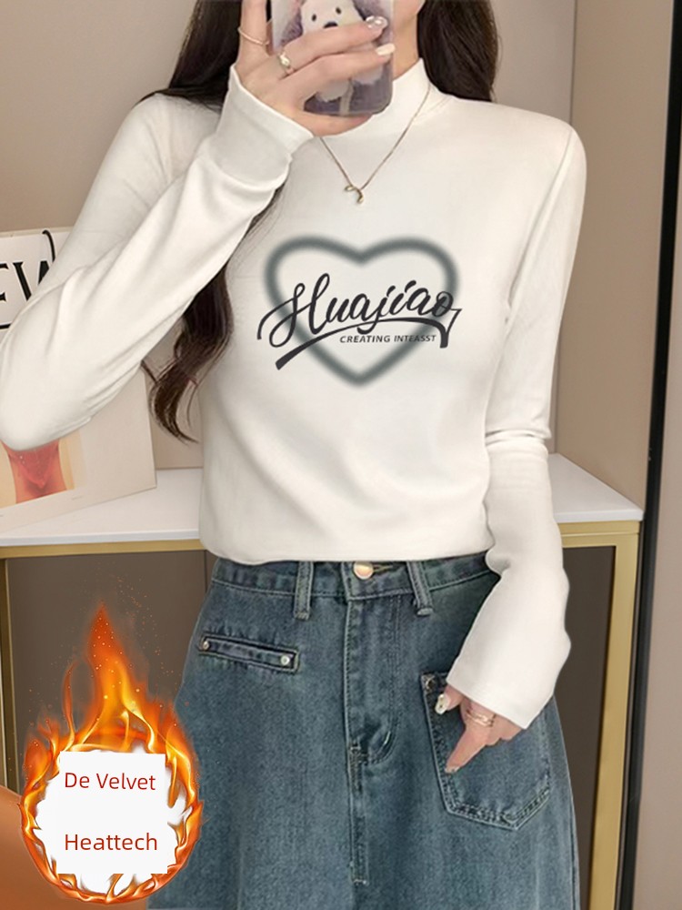 Новинка осени и зимы, футболка с полувысоким воротником из дрэлона, футболка с длинным рукавом 2025, женская, универсальная, утепленная, стройнящая